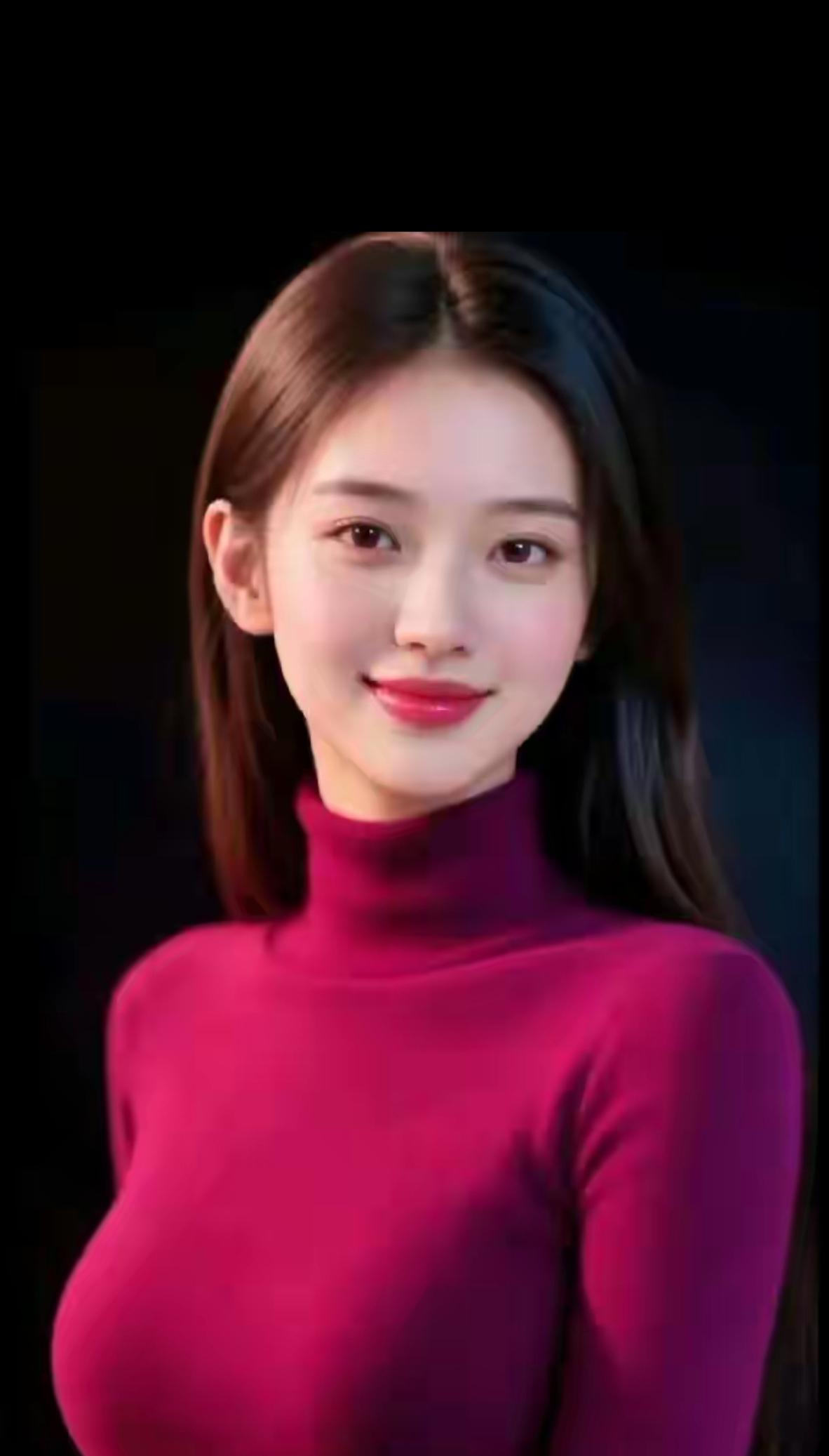 甜美笑容,酒红色高领毛衣,温柔可人酒红色毛衣搭配 酒红色针织毛衣 红色气质毛衣