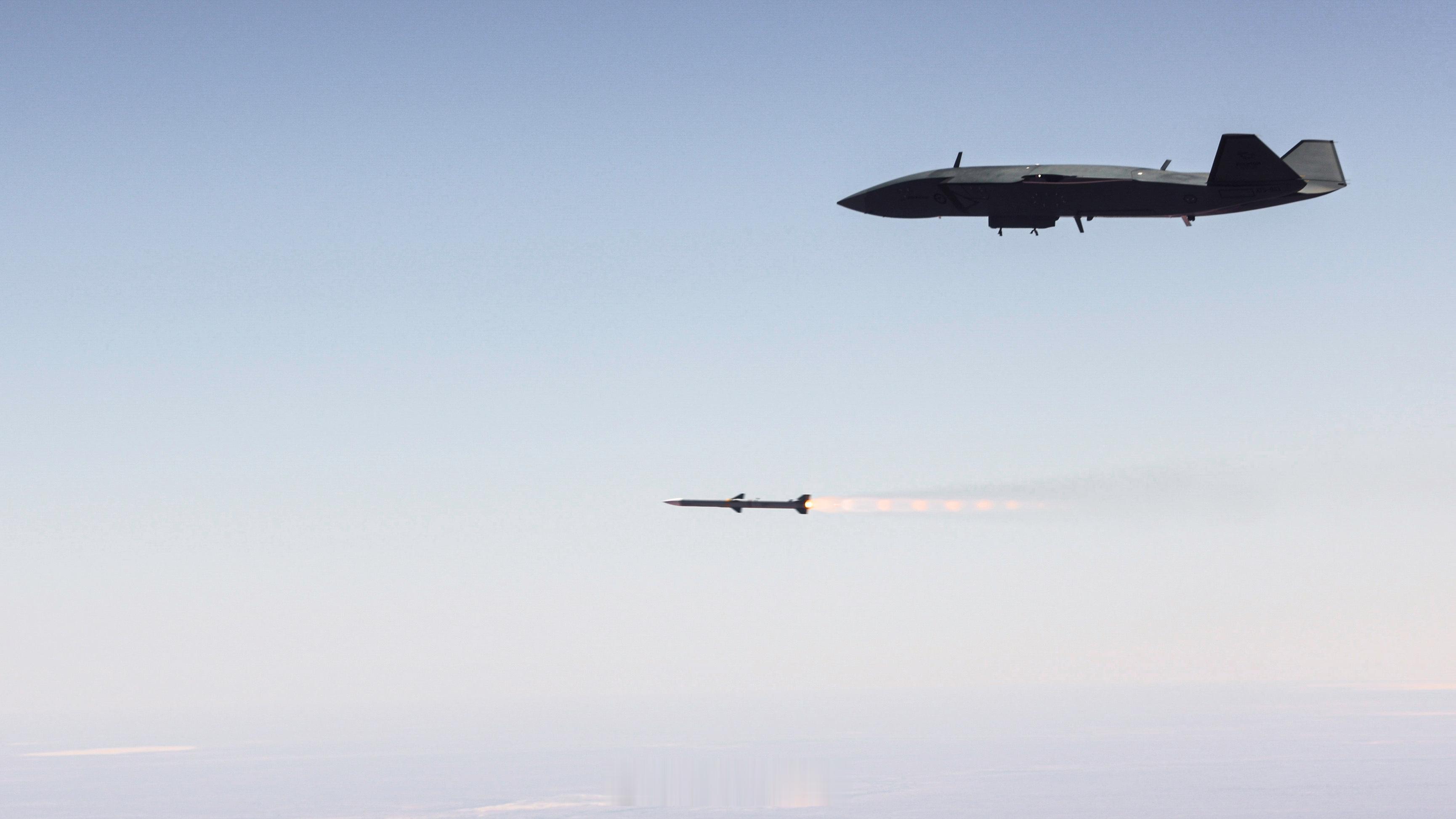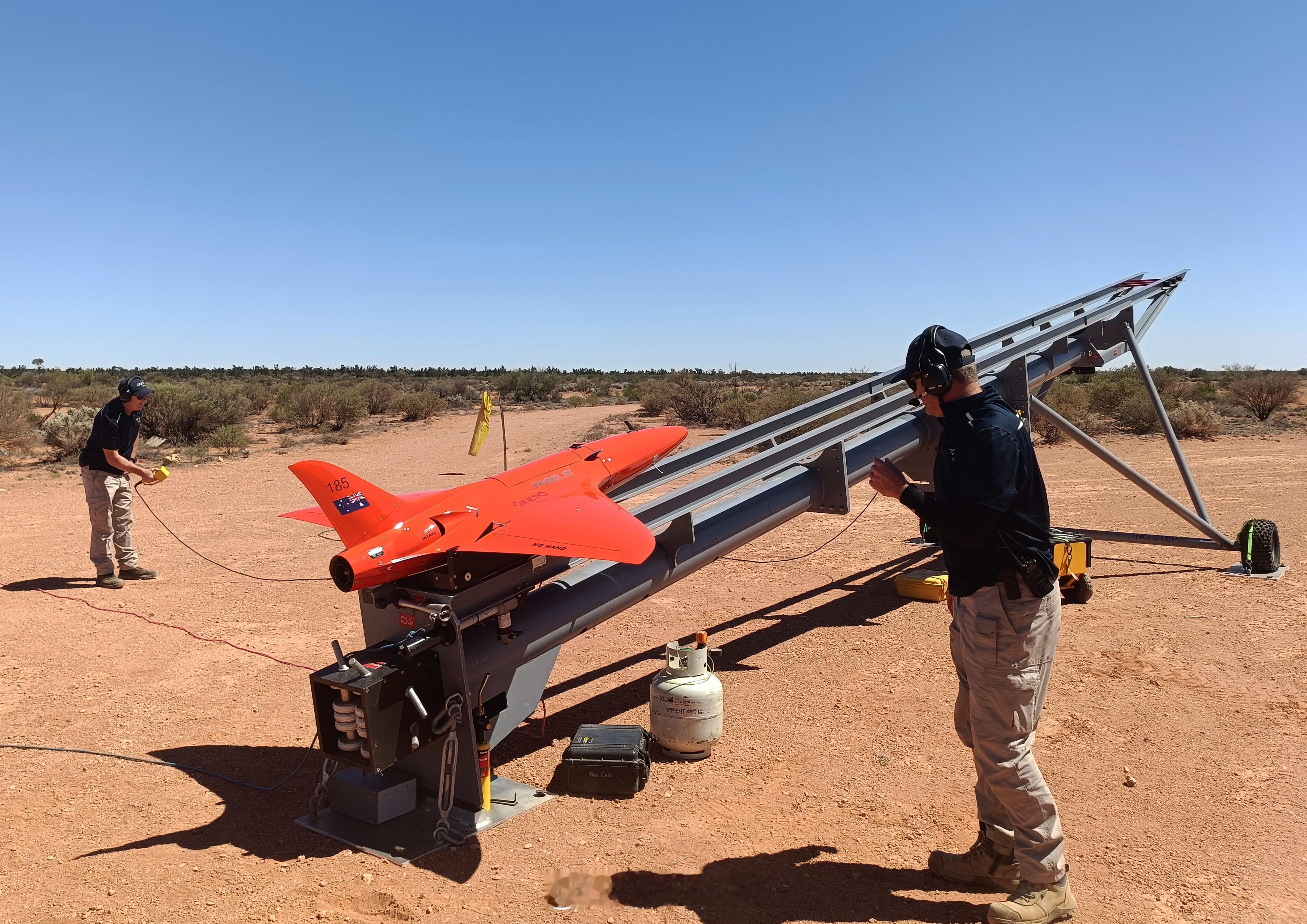 烽火问鼎计划 卡拉里拉 25-4(Trial Kareela 25-4)演示试验现场图片:MQ-28A “忠诚僚机” 在伍默拉靶场发射 AIM-120 空空导弹拦截无人机目标。