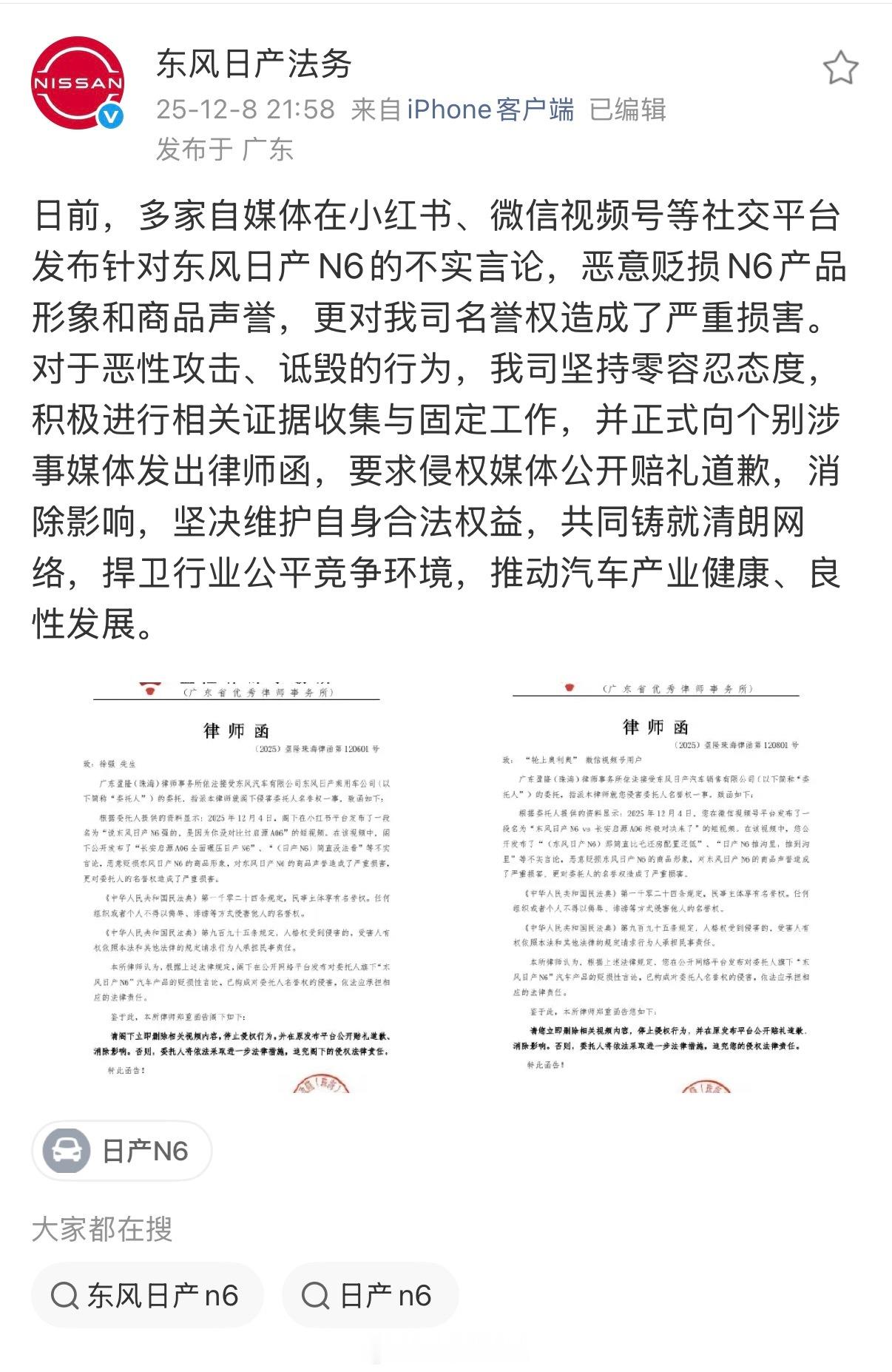 技术埋头苦干,黑稿铺天盖地,良好的行业竞争不该是这个样子的。东风日产面对网络黑嘴选择用法律回击网络攻击,不止是维护自身权益,更是对“劣币驱逐良币”说不。讲真,企业之间竞争是必然的,但是要守住底线,行业才能够健康发展啊!针对网络黑嘴东风日产发布严正声明东风日产声明呼吁打击网络黑嘴