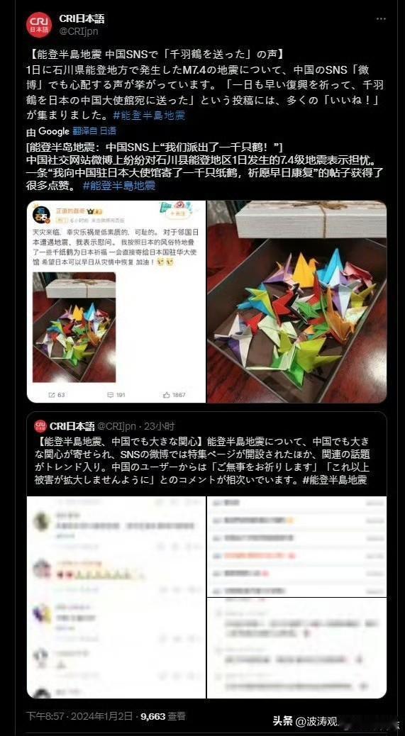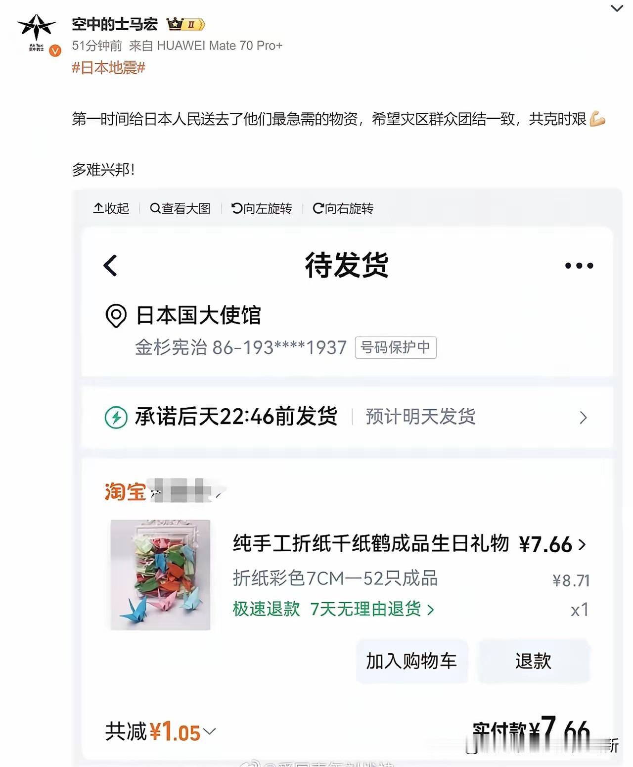 日本遭受了大地震,我们感同身受,日本作为发达国家,经济实力世界前列,啥也不缺,只缺一种东西-千纸鹤,希望更多的人给日本捐赠亟需的千纸鹤!