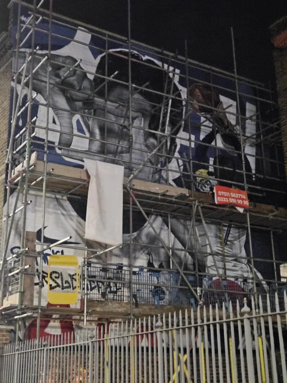 【热刺为孙兴慜在街头绘制壁画】据此前热刺官网消息,孙兴慜将在热刺欧冠主场对阵布拉格斯拉维亚的比赛中重返热刺。为欢迎孙兴慜的回归,热刺为孙兴慜在街头绘制壁画,现在壁画已经被球迷拍到,据悉,当地时间12月9日这幅壁画将完工,而画面中是孙兴慜的经典庆祝动作+捧起欧联杯冠军。北京时间12月10日凌晨4点,热刺将坐镇主场迎战布拉格斯拉维亚。(懂球帝)