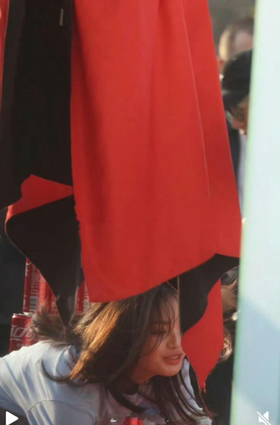 杨超越被绊倒 妹妹被绊倒也不忘表情管理,还好没什么大事,多小心啊。