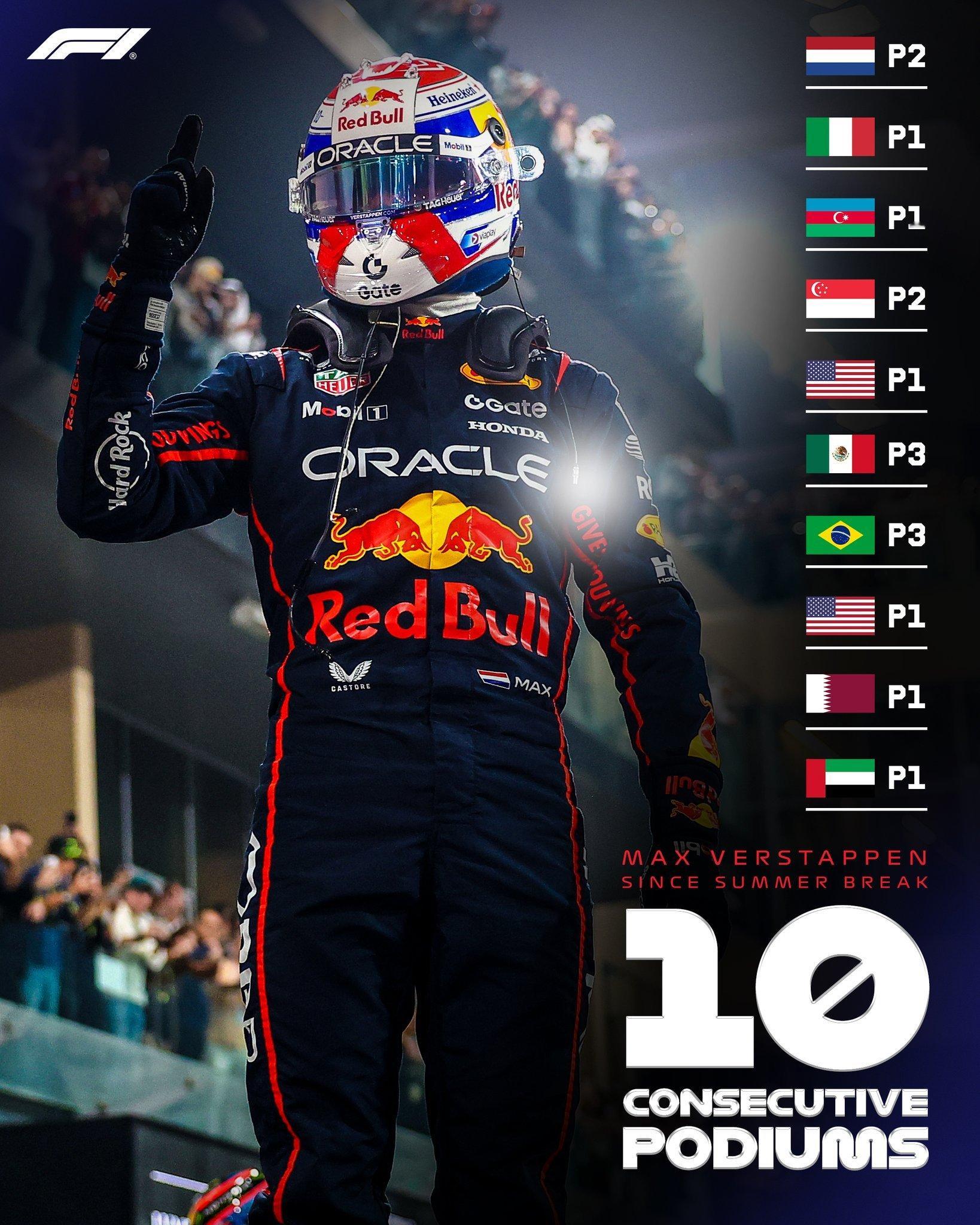夏休之后,维斯塔潘以十连台收官,包括6场胜利2025f1阿布扎比大奖赛