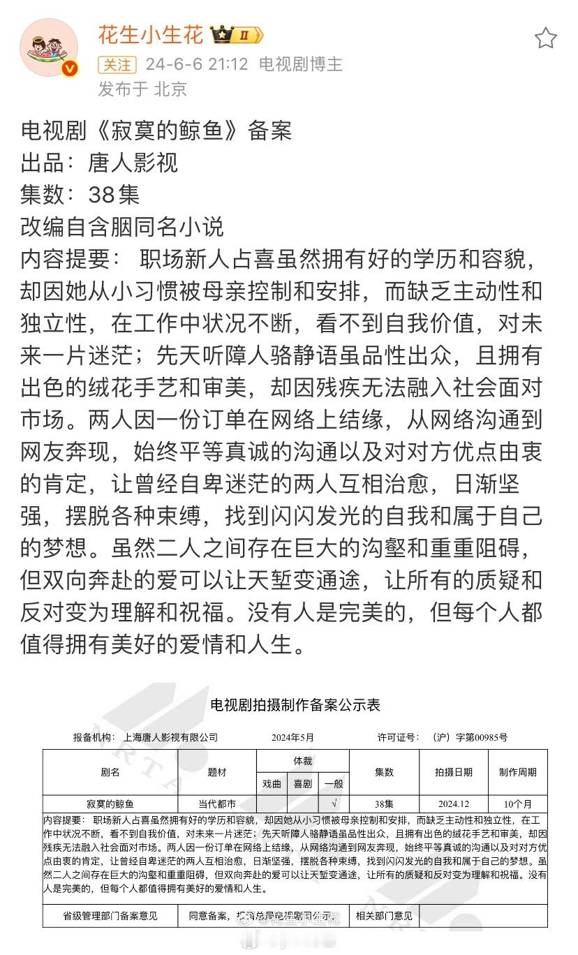 看了含胭的寂寞的鲸鱼,没想到影视化版权在唐人那,含胭的小说基本都是男主残疾,看过基本一本男主没手,一本男主少了一个🥚,这本男主聋哑人,还有一本男主超级抠门(是我看过最真实的抠门男主