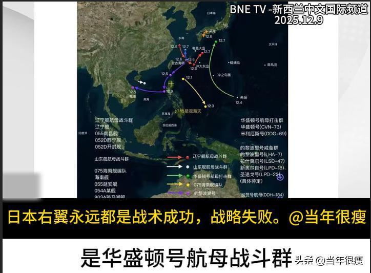 华盛顿号航母打击群就这么走了?! 白天三妹猜测055舰队伴随航行的辽宁号会北上到东京湾,美国的华盛顿号航母打击群似乎也要去东京湾,日本的加贺号似乎也在那里。 说起来要是真的三国舰队齐聚东京湾的话,那岂不是一触即发?说起来还有点小紧张小期待。 结果晚上栗正杰就掏出了华盛顿号打击群的具体位置图,原来已经避开辽宁号前方路线,跑到了关岛附近了。 栗正杰的判断是为了避免和辽宁号战斗群航线发生冲突,华盛顿号打击群直接走开了。。。它居然走开了?。。。它为什么要走开啊。。。
