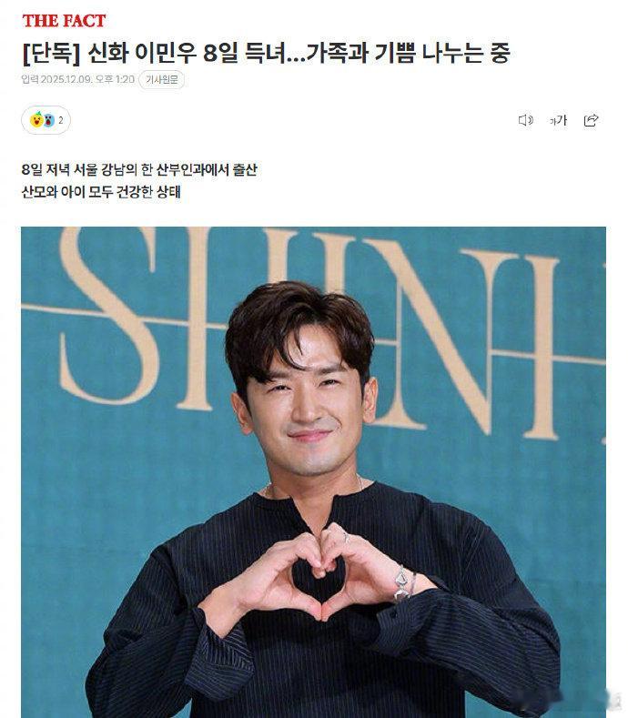 神话李玟雨得女神话李玟雨老婆产女 据韩媒报道,神话组合成员李玟雨于 12 月 8 日晚迎来喜讯,妻子李雅美(音)在首尔江南区某妇产医院顺利诞下一名女婴,母女平安,李玟雨全程陪伴在侧共享幸福时刻。现年 46 岁的李玟雨今年家庭喜事不断,7 月 25 日通过手写信官宣结婚,透露与相知许久的伴侣决定组建家庭;仅 12 天后的 8 月 6 日,便公布妻子怀孕的消息,此次生女距离官宣婚讯仅四个多月,完成了从单身到丈夫再到父亲的 “三级跳”。据悉,妻子李雅美是日籍韩国人,两人还共同抚养着李雅美与前夫所生的 6 岁长女,新生女儿的到来让家庭更显完整。此前李玟雨在综艺节目中透露,已确定明年 3 月举办正式婚礼,主持人和祝歌人选均已敲定,目前正亲自筹备相关事宜。作为 K-pop 第一代偶像团体成员,李玟雨的幸福喜讯引发粉丝和圈内好友纷纷送上祝福,期待他家庭事业双丰收。