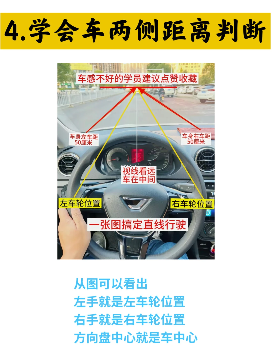 4⃣️例如新手在过窄路,会车的时候,是可以通过方向盘和A柱夹角来判断距离的。