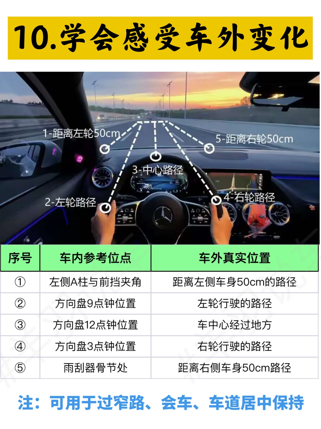 🔟例如在车内,是可以感受车外的变化的,很多人没有找到参照物,总觉得车比路宽,原因在这。