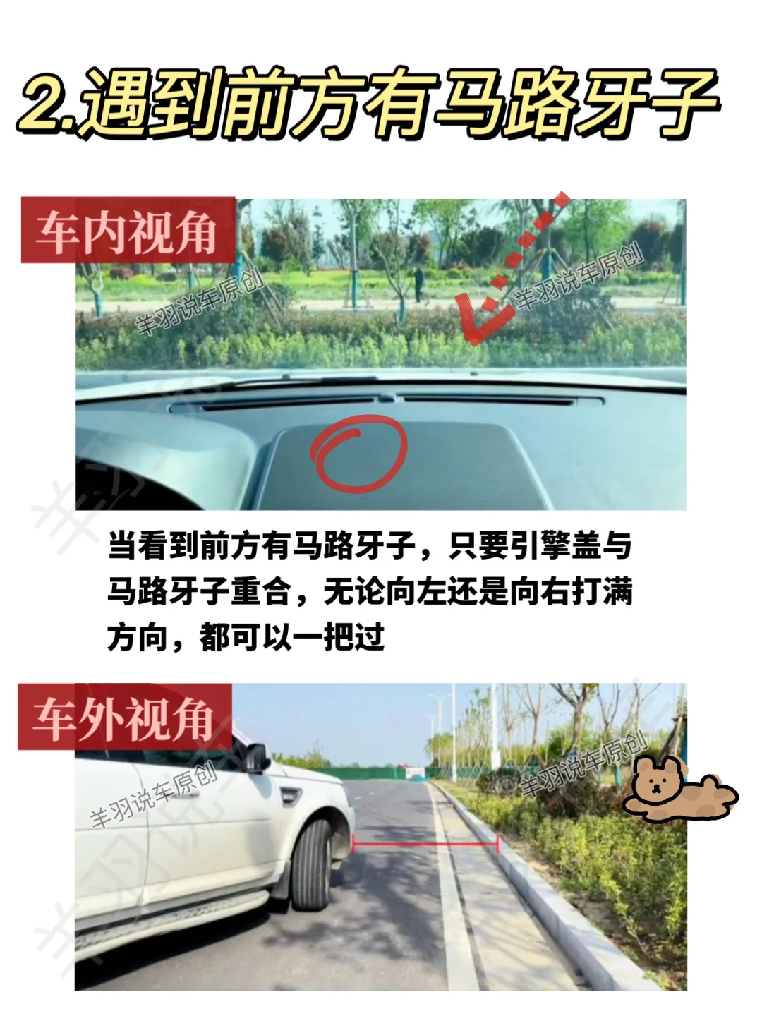 2⃣️前方有障碍物,马路牙子的时候,只要引擎盖与马路牙子重合时,此时无论向左还是向右打满方向都能一把过。