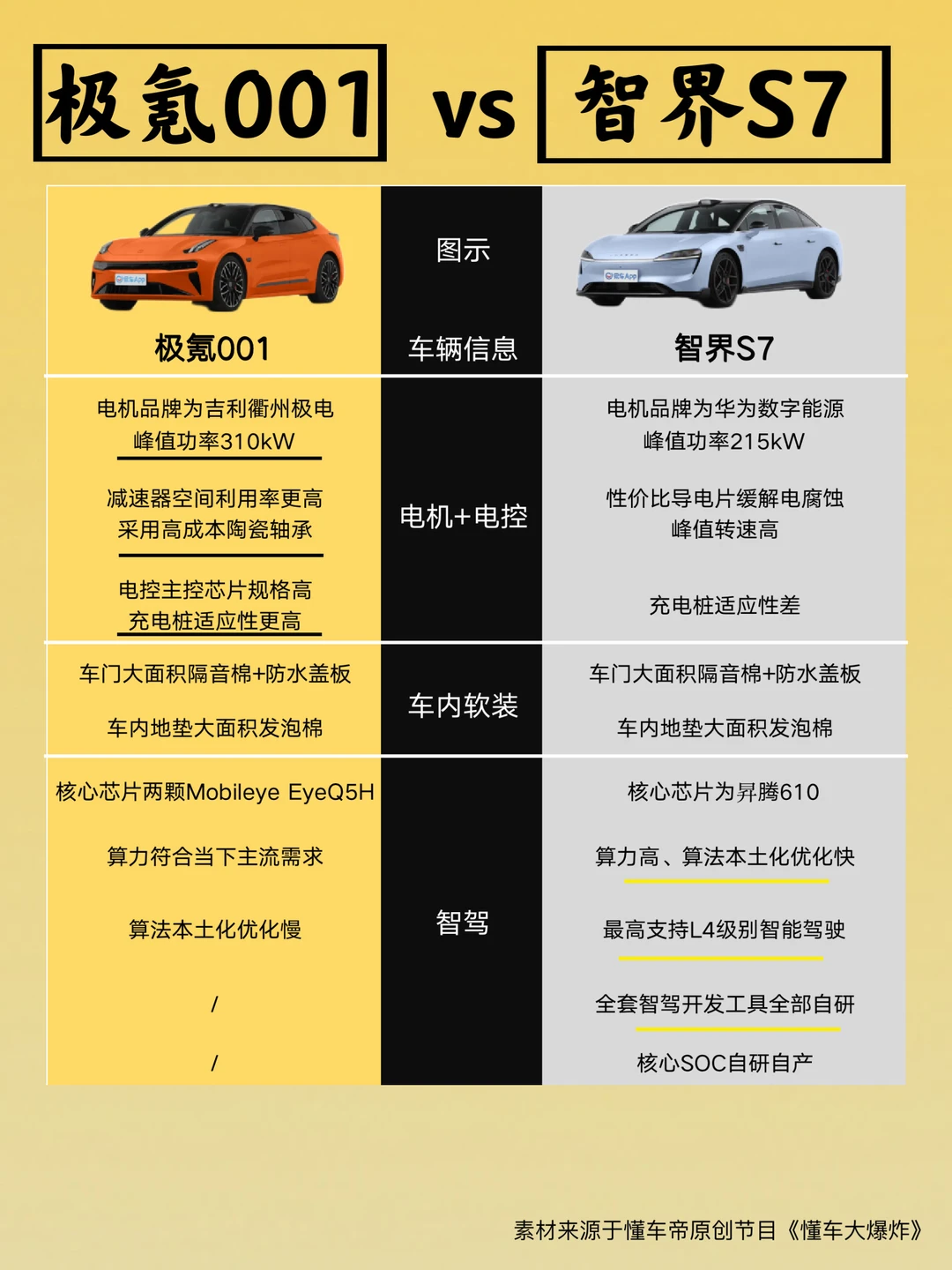 ✔️在智能驾驶领域,极氪001与智界S7同样不甘落后。前者虽在算法本土化优化上略显保守,但其核心硬件——Mobileye EyeQ5H芯片已满足当前主流需求;而后者则凭借昇腾610芯片的高算力、自研自产的核心SOC以及支持L4级别的智能驾驶能力,在智能化赛道上领跑前行。