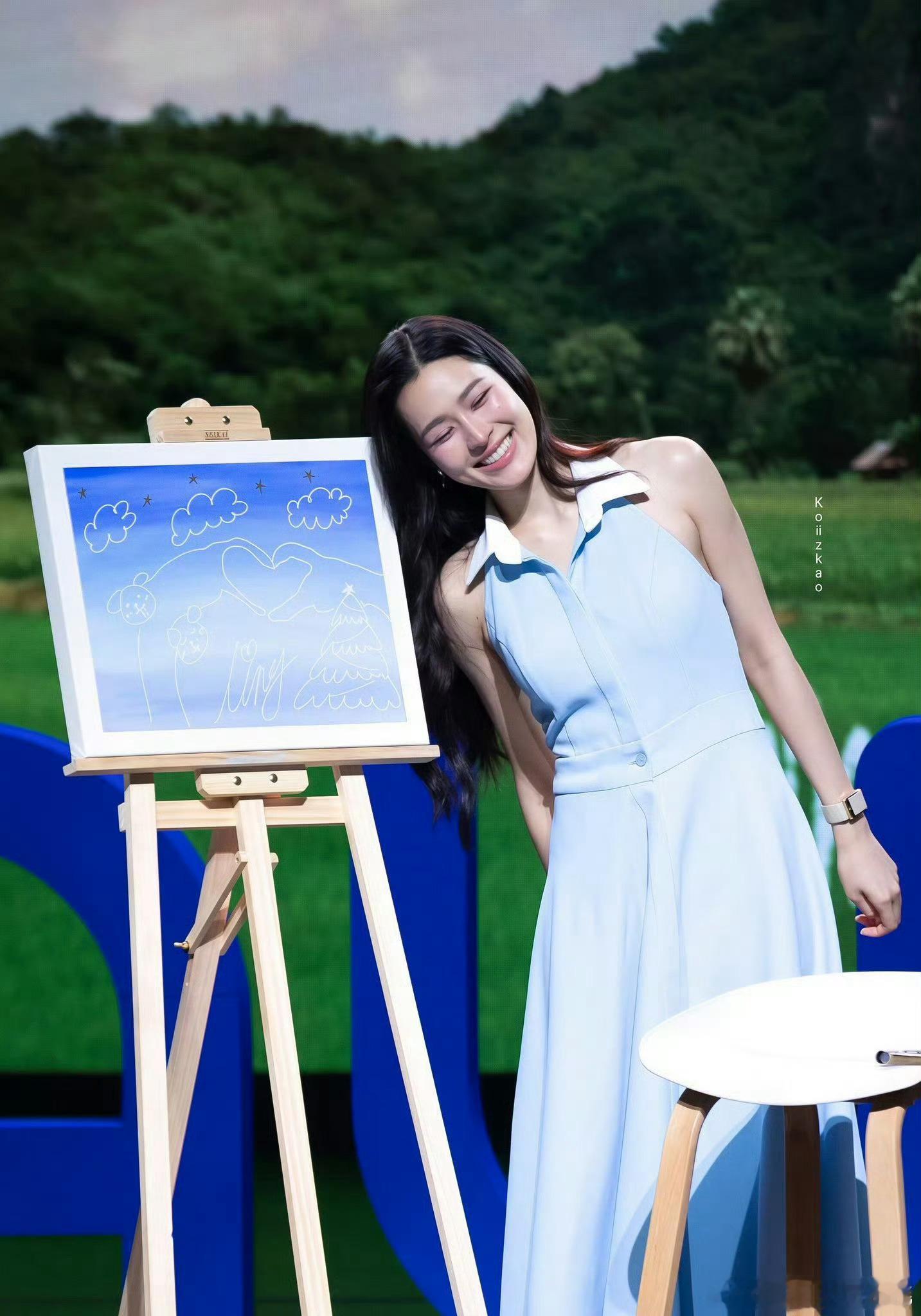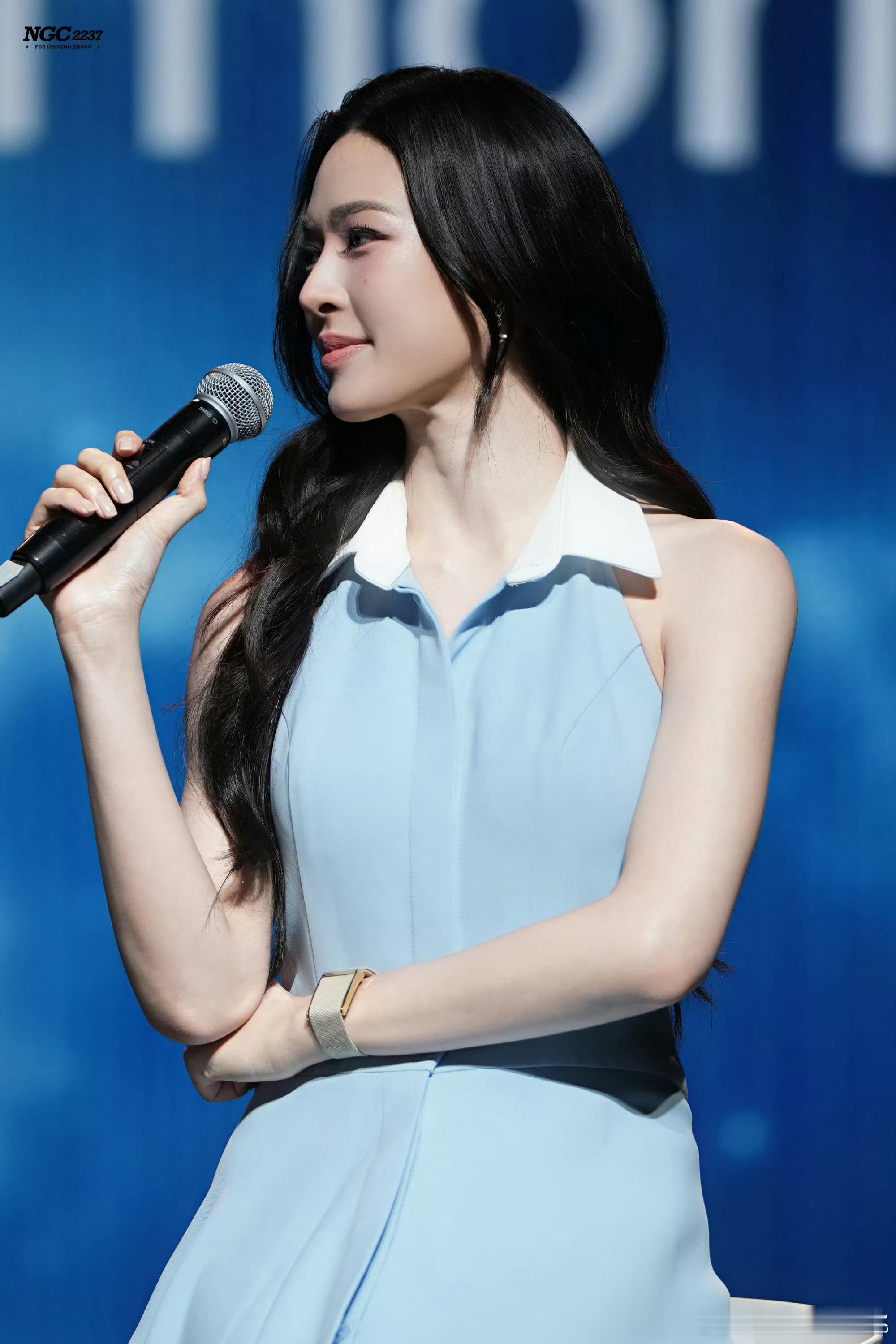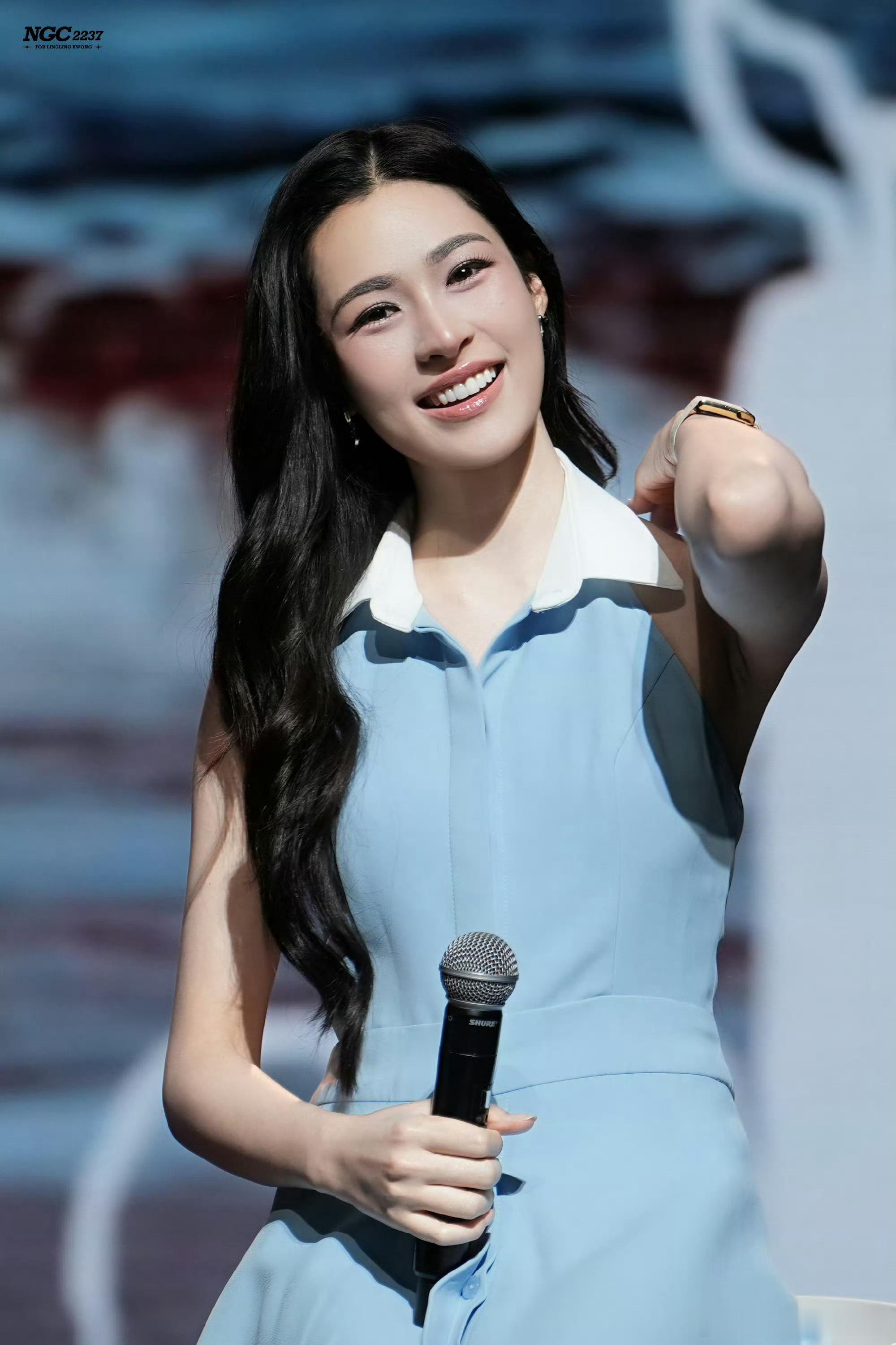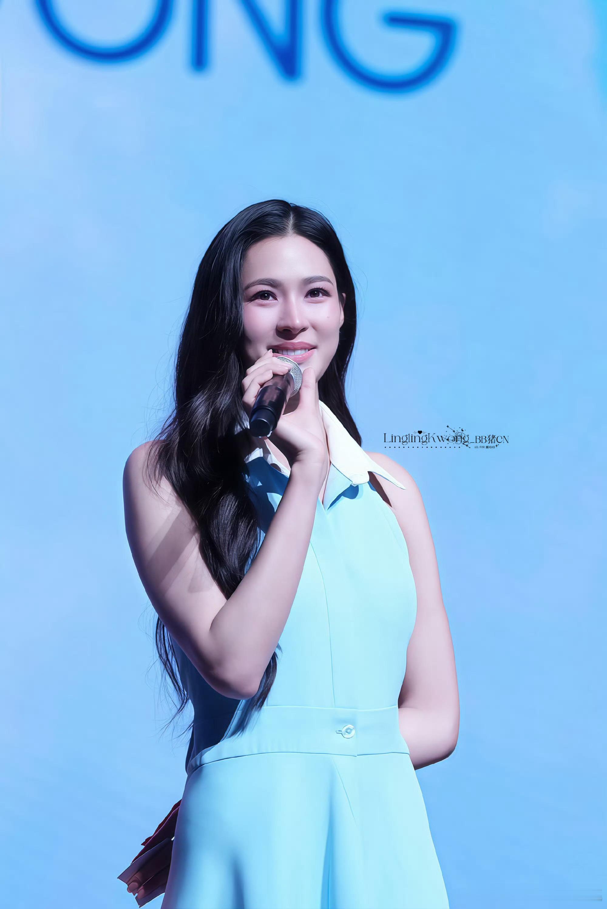 邝玲玲今天线下拍卖活动,浅蓝色连衣裙好温柔好清新🍀