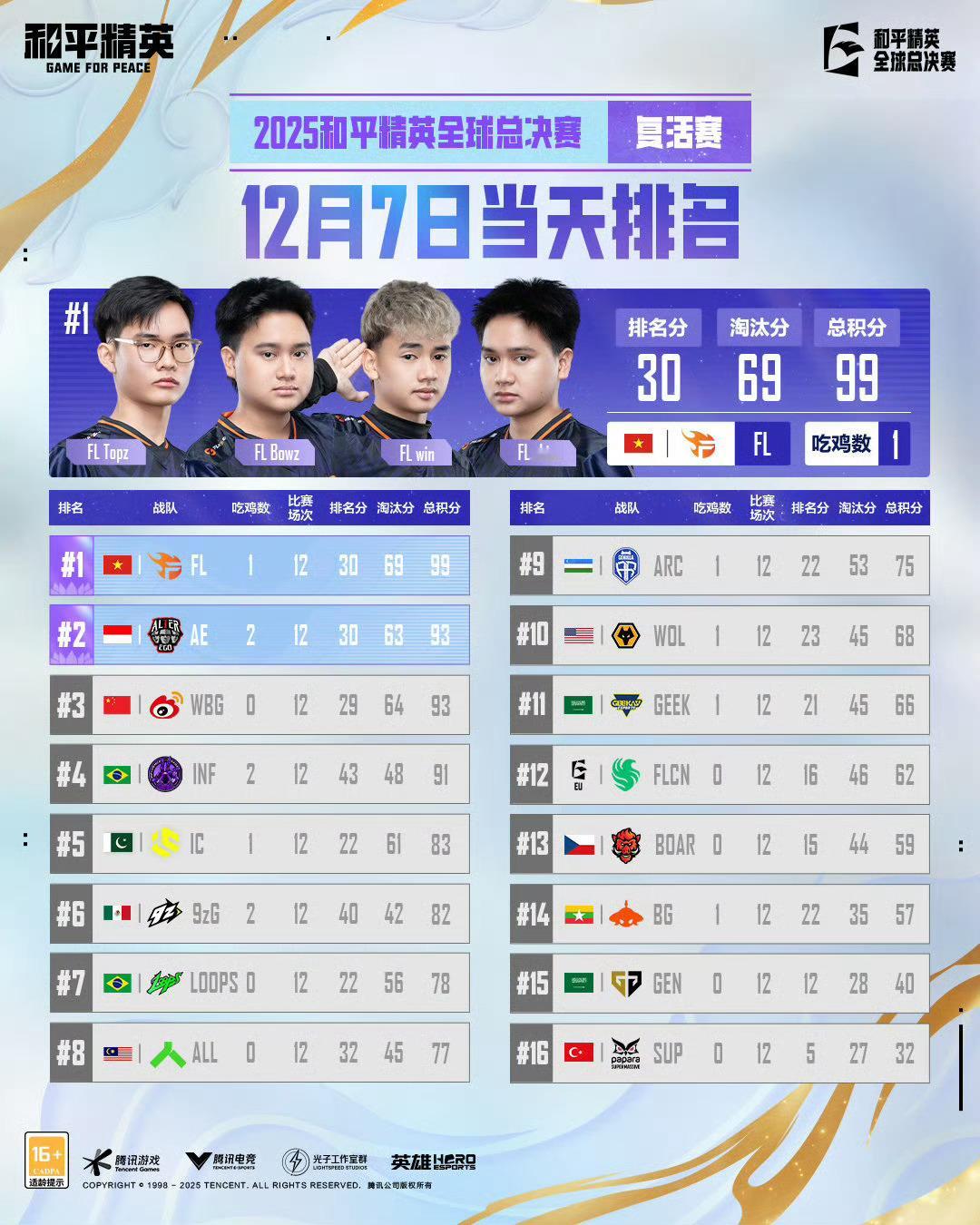 世界赛决赛倒计时3天2025和平精英全球总决赛【2025和平精英全球总决赛】复活赛 每日积分排名复活赛两日积分排名来袭,各位特种兵快点击图片了解详情吧~