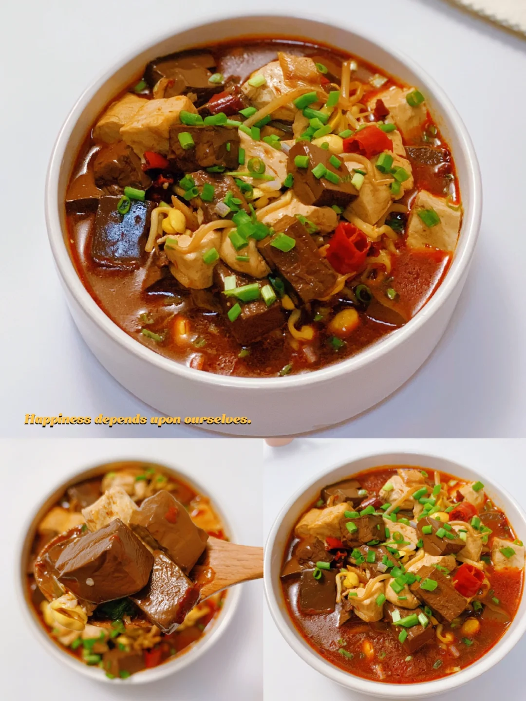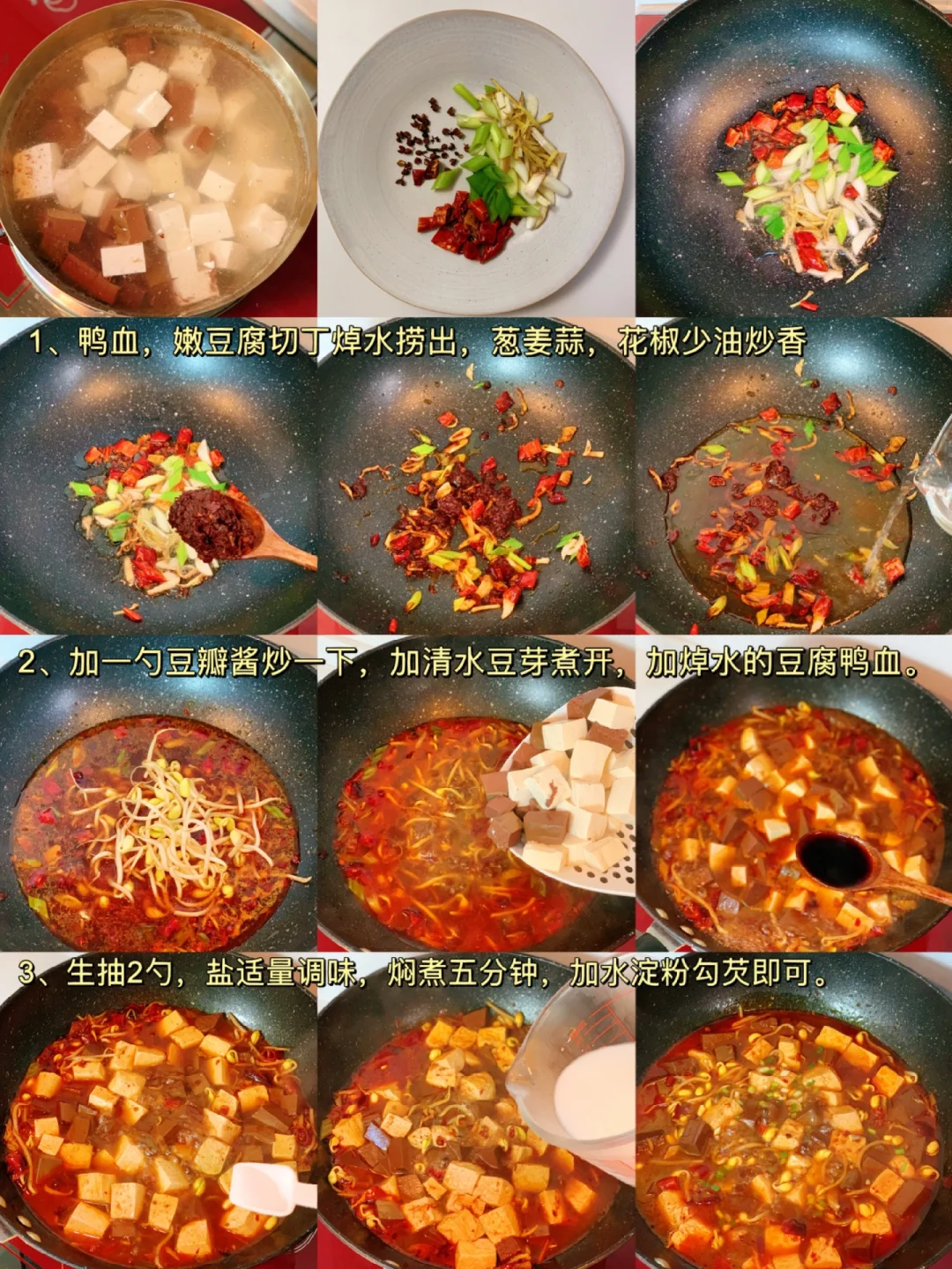 深夜放毒[得意R][得意R],自制低Gi减脂餐,我想让减脂餐更好吃✨✨✨ [飞吻R]hi,又是快乐的一天啊❗今日分享: ----- 【麻辣鸭血豆腐】 ❤食材: 主料:鸭血,嫩豆腐,黄豆芽 辅料:葱姜蒜,干辣椒,豆瓣酱,花椒粒 做法见图片 ❤❤小提示: 1️⃣鸭血,豆腐要焯水。 2️⃣不喜欢花椒粒的可以换成花椒粉。 ✨✨又是快乐减脂的一天呀❗ [派对R][派对R]随手分享减脂餐,喜欢请关注‼️