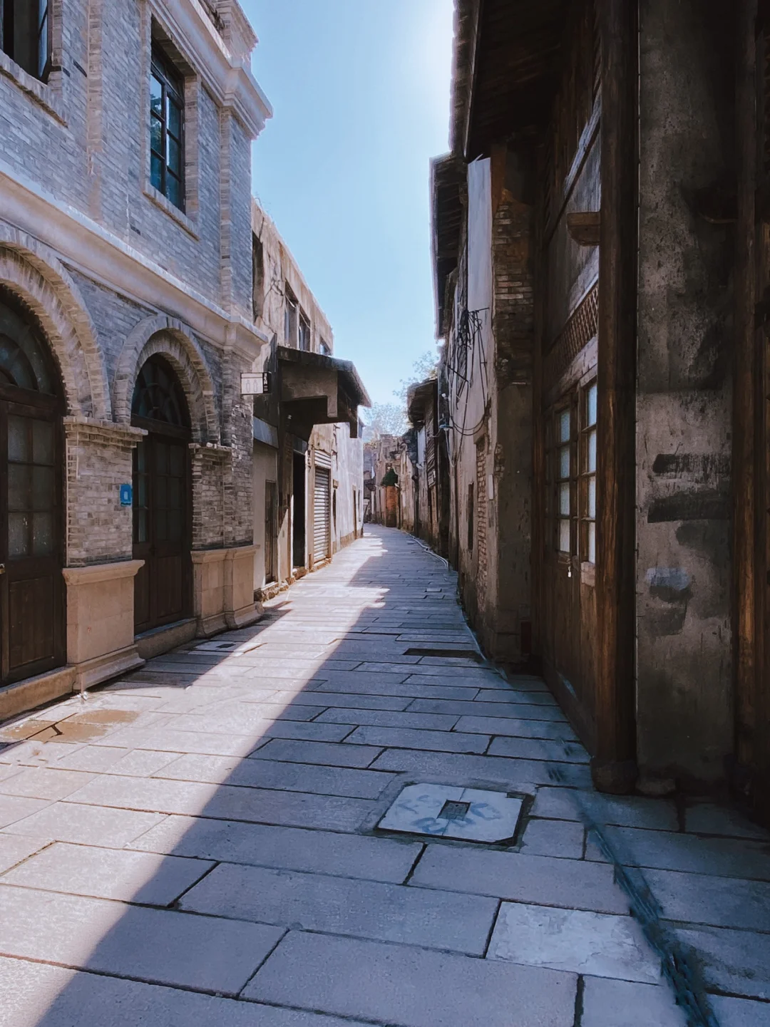 🏃🏻♂️后边一排店面都还未开放~空无一人的长长石板路,很像拍电视剧的影视城。