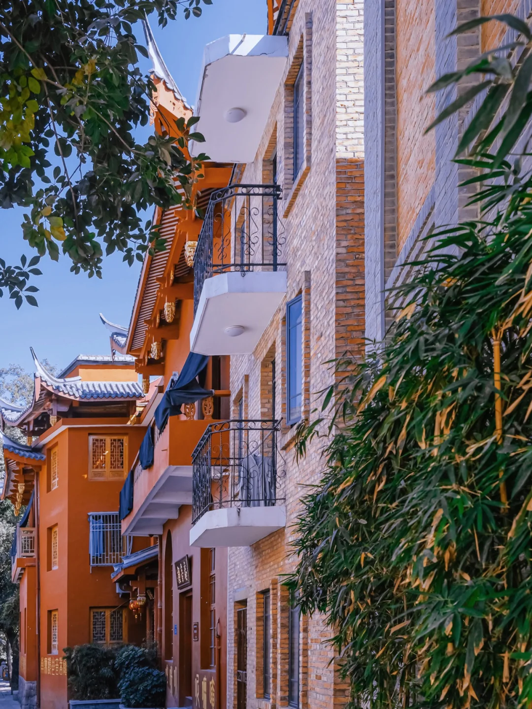 🏃🏻♂️上下杭里头各条小巷四通八达,民国风貌的建筑很有感觉。星河巷这一角度取景很有旅拍风~穿过红墙有张真君祖殿。边上有一家汉服租赁,喜欢的可以租一件拍古风。