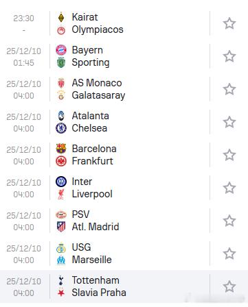 【看球安排】欧冠第6轮凌晨开战⚔️01:45 拜仁慕尼黑vs葡萄牙体育 04:00 国际米兰vs利物浦 04:00 热刺vs布拉格斯拉维亚 04:00 亚特兰大vs切尔西 04:00 巴萨vs法兰克福 04:00 埃因霍温vs马竞