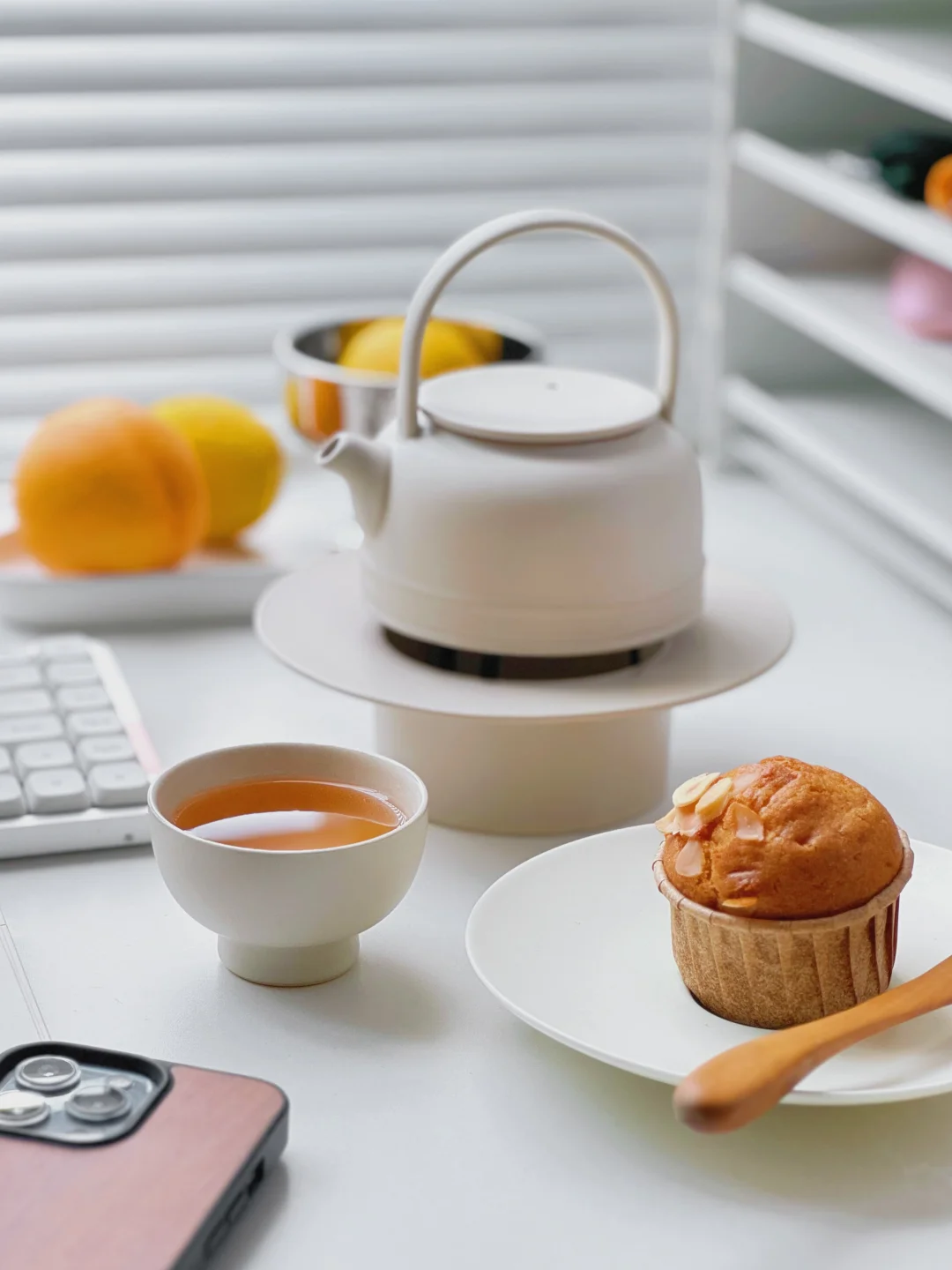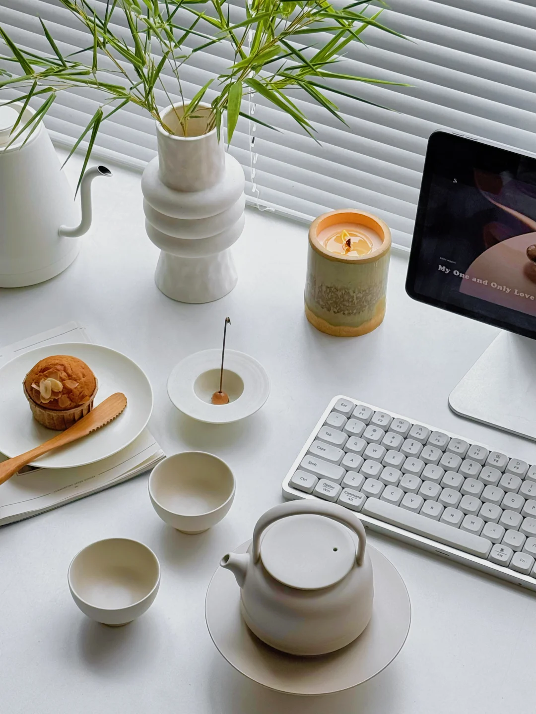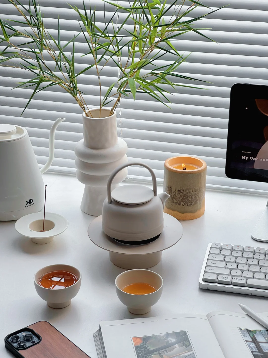 每天下午午睡起来 会给自己泡一壶茶 醒一醒 花瓶里的竹子有淡淡清香 放下百叶窗遮挡住窗外的大太阳 宅家的放松感正正好。