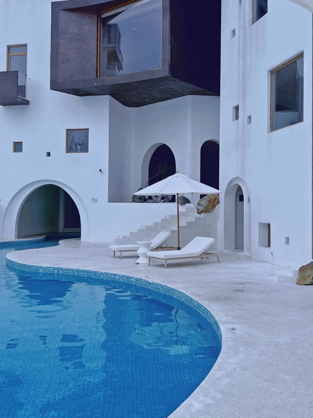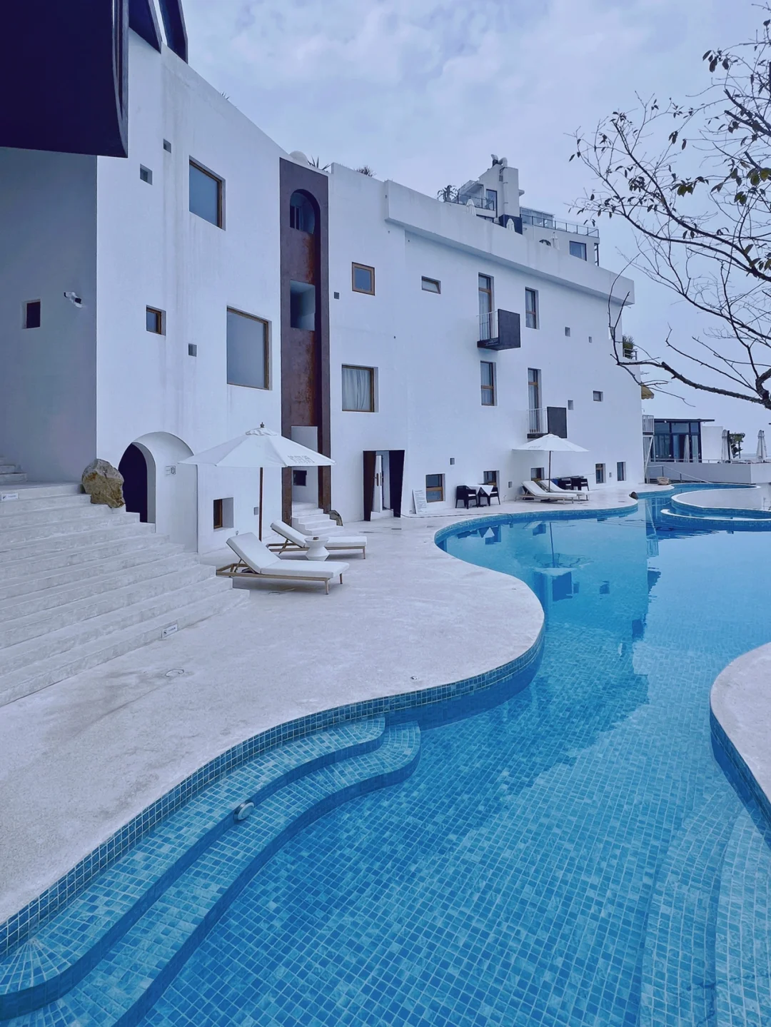 八月的小旅行,放松一下。 去年就来过霞浦这个民宿, 今年为了这座新建的泳池再来了一次。 泳池造型还是很美的,从餐厅天台俯瞰很养眼。 蓝色不就是夏天的颜色嘛! 🏊 入住泳池左手边那栋新房间,就只两间。 只有这两间房的住客才能不限时游泳。 房间有点难定,价格也是不菲。 感觉现在霞浦、平潭的民宿在单价上都内卷的厉害, 随随便都是2k,争先恐后。 🏊 泳池其实是在一栋新建筑内。包含了餐厅、咖啡店、茶室。不是房客需要购票入内。 开放时间是10点-21点 🏊 改天再发民宿房间吧。