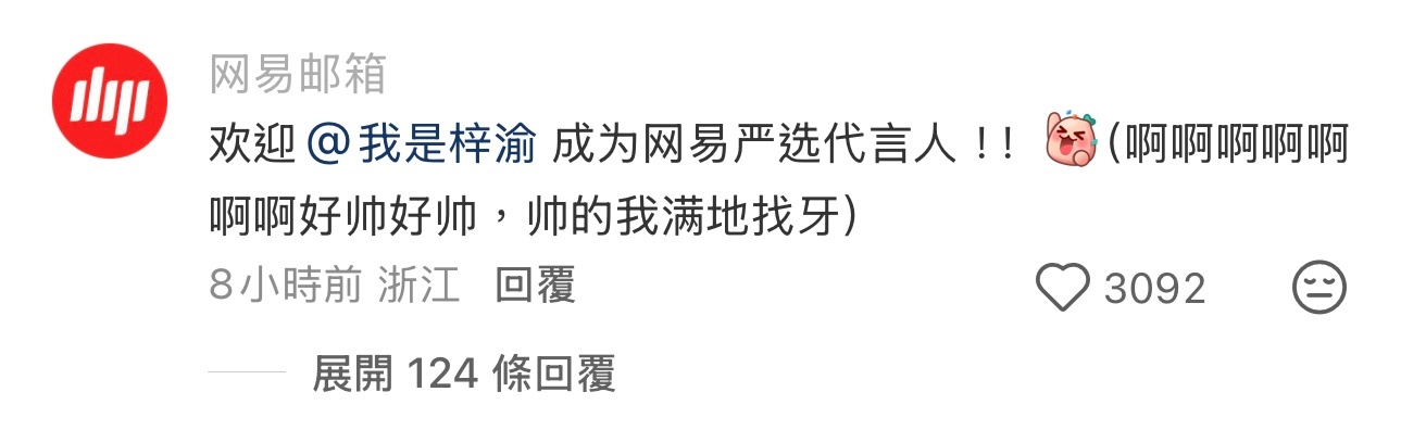 这个网易好爱梓渝啊,官号全部出动欢迎梓渝成为网易严选代言人。