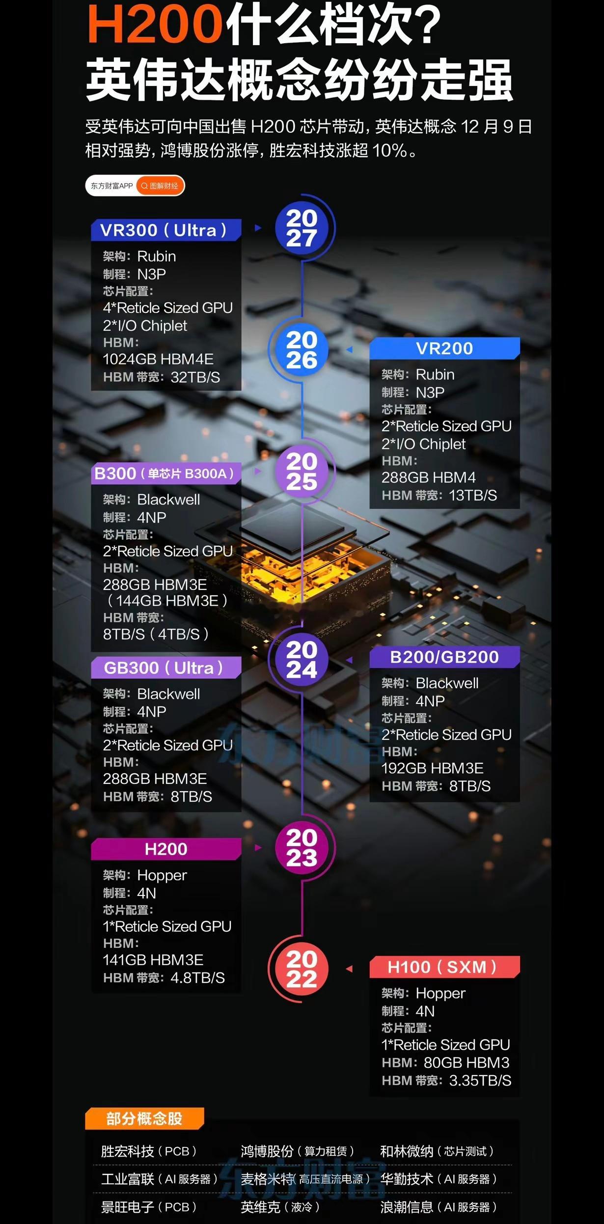 美国将允许英伟达向中国及其他国家的“合格客户”出售其H200人工智能芯片,但附加了一项重要条件:英伟达需将芯片销售收入的25%上缴美国政府。这一政策同样适用于超微半导体和英特尔等美国芯片企业。通俗来说,这好比美国政府对高科技产品出口开了一个“特许通道”,但要求企业缴纳高额“过路费”。此举旨在保护美国国家安全、创造本土就业并维持其在AI领域的领先地位。对英伟达而言,这是一场游说胜利,黄仁勋曾多次强调中国市场至关重要,警告伤害中国的事情,往往也可能伤害美国。英伟达H200芯片的出口若放开,将带动其全球供应链需求,以下A股公司因其在英伟达供应链中的角色可能间接受益:AI服务器与硬件集成:工业富联是英伟达GB300服务器的全球独家代工厂,承接其数据中心业务40%的份额。浪潮信息则与英伟达签署了10亿美元的H200 GPU采购协议,其AI服务器全面适配英伟达GPU。智微智能作为英伟达NPN合作伙伴,推出基于英伟达芯片的边缘计算产品。光模块(数据传输核心部件):中际旭创是英伟达800G光模块的独家供应商,并锁定其80%的1.6T光模块订单。新易盛的800G光模块也已供应英伟达,1.6T产品通过认证。天孚通信是英伟达Quantum交换机光引擎的核心供应商。PCB(印制电路板)与连接部件:胜宏科技是英伟达显卡PCB的全球核心供应商,份额约50%,并独家供应GB300的高端HDI板。沪电股份在北美AI服务器PCB市场占有率超80%。沃尔核材的DAC高速铜缆占全球份额60%,是英伟达GB200机柜的标配。封装测试与散热配套:长电科技可为英伟达H100、H200系列GPU提供先进封装方案。通富微电为其提供Chiplet扇出型封装服务。英维克为英伟达GB300机型提供液冷解决方案,市占率超40%。其他关键材料:铂科新材是英伟达GPU电感软磁粉芯的全球独家供应商。此次政策调整可视为一种“受限的开放”:通过高额分成缓解美企收入压力,同时试图遏制中国获取顶尖技术(H200并非英伟达最先进的Blackwell架构芯片)。对中国市场而言,短期可能缓解AI算力瓶颈,但长期凸显自主可控的重要性。华为昇腾等国产芯片的崛起,以及中方对英伟达安全漏洞、垄断问题的调查,均表明中国正加速技术自立。