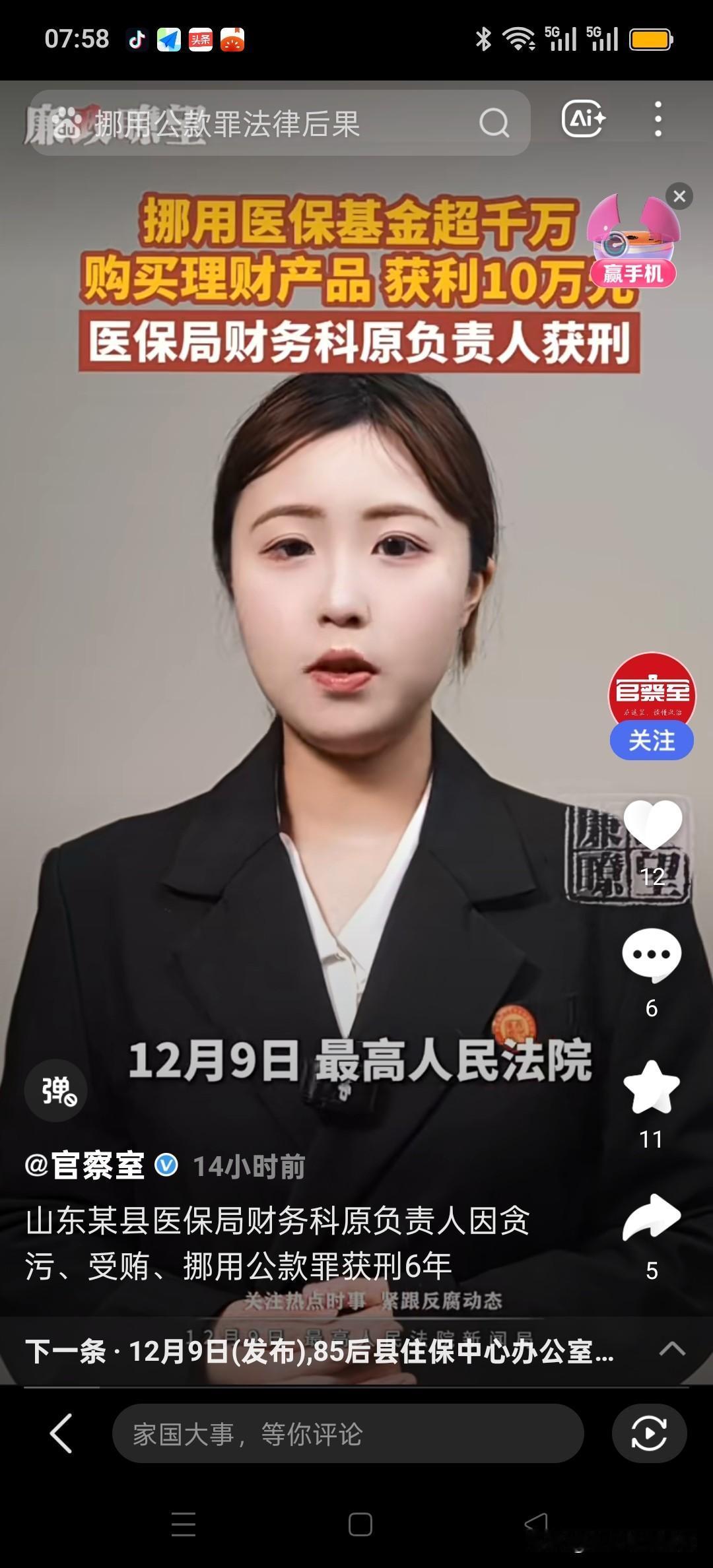 干部挪用上千万医保基金买理财获刑医保贪腐 12月9日“两高”发布了惩治群众身边腐败犯罪典型案例,其中山东某县医保局财务科负责人代某某的案子令人咋舌。2016年3月到2024年10月,他利用职务便利,伪造报销单据套取医保基金41万,非法收受他人财物18万,还多次挪用1460万医保基金买理财获利10万。虽然案发前归还了挪用的基金,但这行为性质恶劣至极。医保基金是老百姓的救命钱,他却为了一己私利肆意挪用。最终他被以贪污罪、受贿罪、挪用公款罪数罪并罚,获刑也是咎由自取,这种腐败行为就该严惩。
