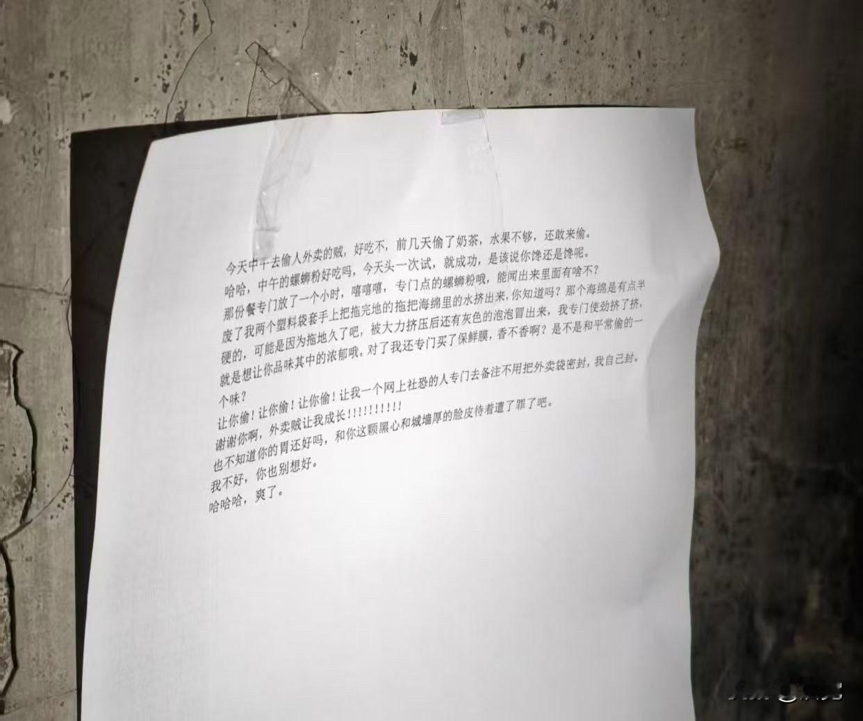 现在的事儿真是无奇不有 小伙顺手拿外卖 结果把自己“搭”进去了 这次的事情 我觉得能让他长一辈子的记性 想一想 能想出这样的对策的人 也算的是个人才 臭豆腐掩护做得好 用螺狮粉点缀的又是点睛之笔 脑海里浮现的画面 让我这个路人 都觉哭笑不得 这标签可是要带很多年了[捂脸][捂脸][捂脸]