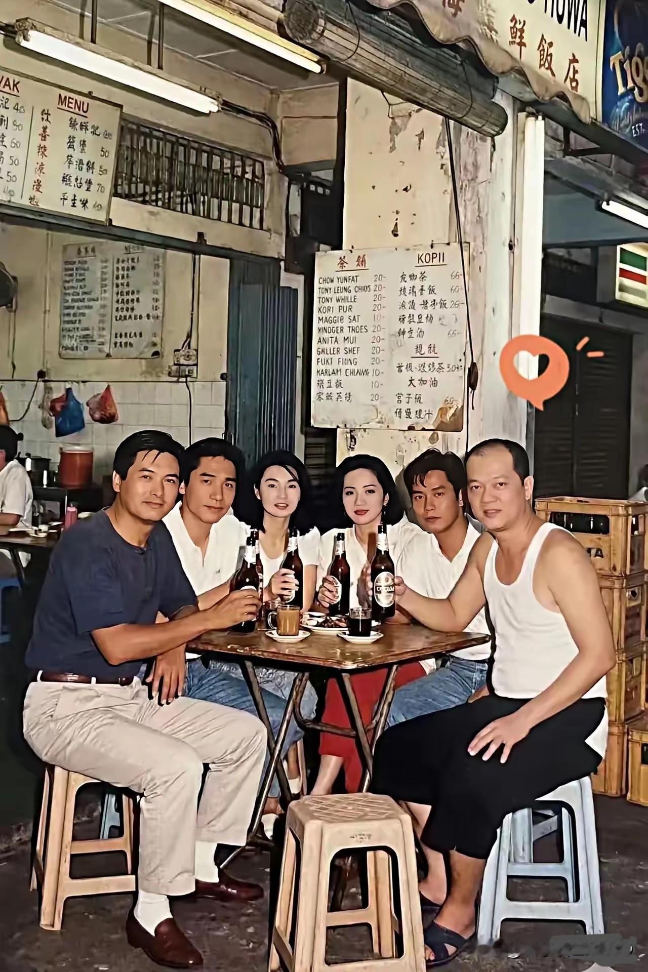一群风华正茂的帅哥美女,一张引起多少六零后七零后美好回忆的照片,周润发,梁朝伟,张曼玉,梅艳芳,张国荣,就是最右边的想不起来名字了,哪位大神告知一下。