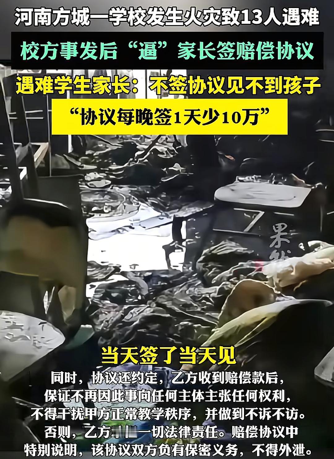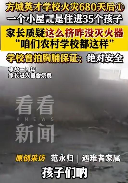 1. 宿舍拥挤问题:一个宿舍住35人,根本不符合标准,为何长期未被监管部门查处? 2. 消防设施缺失:宿舍灭火器过期、喷淋系统失效、防盗网无逃生窗,学校此前的安全检查是如何通过的? 3. 火灾原因:曾提“电暖器/电热毯起火”,但680天未公布最终调查报告,真实起火原因是否另有隐情? 4. 救援延误:为何13名孩子未能逃生?宿舍门是否被锁、值班人员是否在岗? 5. 赔偿协议合法性:学校以“不见孩子遗体”“晚签少10万”胁迫家长签协议,是否涉嫌违法? 6. 调查进度迟缓:按《消防法》规定,火灾调查最长应在90日内完成,为何680天仍未公开结果? 7. 监管责任:学校是经教体局批准的民办校,日常安全监管为何完全缺位?涉事人被控制后,是否有更高层级责任人被问责? 8. 家长诉求回应:家属多次追问调查结果却被推诿,“涉及未成年人隐私”的理由是否合理? 9. 类似隐患排查:当地是否全面排查其他学校的宿舍拥挤、消防缺失问题?如何避免类似悲剧重演?