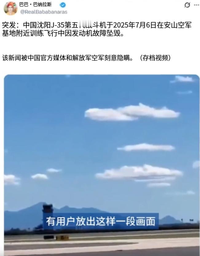 歼-35战斗机在鞍山附近坠毁?”近日,外网有人放出一段战斗机坠毁视频,声称是中国的歼-35,但实际上却是美国的F-35,造这种谣究竟是何居心?   最近社交平台上有条消息传得挺邪乎:“歼-35在鞍山附近坠毁了”,还配了段战机坠毁起火的视频,配文连地点,都编得有鼻子有眼。不少网友急着转发求证,军工迷更是连夜扒资料,就怕咱们的新战机出意外。 可越扒越不对劲。这哪是歼 - 35?分明是美军自己的 F-35 栽了 先看视频里的 “主角”。歼 - 35 是双发战机,机身两侧的发动机喷口看得清清楚楚;但视频里摔的战机,屁股后面就一个发动机 —— 这是 F-35 的标志性设计。再放大画面,战机垂尾上模糊的标志,经军事博主锐化后露了馅:那是美军的机徽,和解放军的八一军徽差着十万八千里。 有人顺着视频溯源,很快挖出了真相。这是上个月美国加州爱德华兹空军基地的事故,一架 F-35B 训练时飞控失灵,飞行员弹射逃生,战机砸在荒漠里烧得只剩残骸。造谣的人够懒,就裁掉了视频里的美军基地标识,添上 “鞍山训练空域” 几个字,就把美国的烂摊子,硬扣到了中国头上。 选 “鞍山” 当谣言地点,藏着坏心思。这座城市是东北的军工重镇,北部战区空军的重要部署地,说这儿出事,既能勾起公众对 “军工重镇关联先进装备” 的联想,又能暗戳戳渲染 “军事风险”。去年美军造谣 “直 - 20 在西沙坠毁”,今年又给歼 - 35 安上 “鞍山事故”,套路都不带换的 — 专挑有战略意义的地点编故事。 为啥偏偏盯着歼 - 35 造谣?答案就藏在中美舰载机的较劲里。 咱们的歼 - 35 是新一代隐身舰载机,现在正冲刺定型,马上要配给福建舰。它的隐身性能、载弹量都不输 F-35,一旦列装,解放军航母的远洋战力直接上一个台阶。这可戳了美军的痛处 — 他们在亚太的隐身舰载机垄断,要被打破了。 反观美军的 F-35,最近正麻烦缠身。今年才过半年,就摔了 4 架:佛罗里达基地的 F-35C 冲出土跑道烧得只剩骨架;日本岩国基地的 F-35B 燃油漏光,迫降时差点炸了;连最先进的 F-35A,都曝出雷达故障,在演习里被老式战机 “击落”。 五角大楼自己都承认,F-35 的妥善率不到 60%— 一百架里近四十架飞不起来。维修更是烧钱,光隐身涂层脱落这个小毛病,每架修下来就得 120 万美元。反观歼 - 35,去年 120 多次试飞只出了 2 次小故障,稳定性甩了 F-35 几条街。 打不过就造谣,成了美军的惯用伎俩。2022 年歼 - 20 列装时,他们说 “歼 - 20 发动机停摆”,结果是把 F-22 的故障数据搬了过来;2023 年翼龙 - 3 试飞,又传 “无人机坠海”,真相是美军自己的 MQ-25 掉水里了。每次咱们的装备有突破,美军的 “谣言生产线” 就准时开工。 更恶心的是,这些谣言不是瞎编的,背后有专业团队操盘。网络安全机构查到,传 “歼 - 35 坠毁” 的账号,好多和美军网络司令部的 “潮汐部队” 有关。他们先在境外抛话题,境内 “水军” 接力转,再找假 “军事博主” 解读,连 “航空管制记录”“医院接诊单” 都能伪造,就为了让谣言看起来像真的。 但真的假不了,解放军从不会用谣言 “通报” 装备情况。歼 - 35 航母适配试验,官媒全程直播;国防部发布会也明说过研发进展。这么大的国之重器,出点风吹草动都会权威发声,轮不到外网账号瞎逼逼。 有意思的是,就在 “歼 - 35 坠毁” 谣言传得最凶时,美军又爆新料:F-35 在高湿度环境下,隐身涂层寿命直接砍半。这下更明白了 —自家战机烂摊子捂不住,就想拉歼 - 35 下水,转移注意力。 下次再刷到 “某装备出事” 的消息,别忙着转发。先看看是不是权威信源,再想想美军是不是又在甩锅。毕竟,真金不怕火炼,咱们的军工实力,从来不需要靠别人的谣言来 “衬托”。那些忙着篡改视频、编造地点的人,终究会被事实狠狠打脸 。