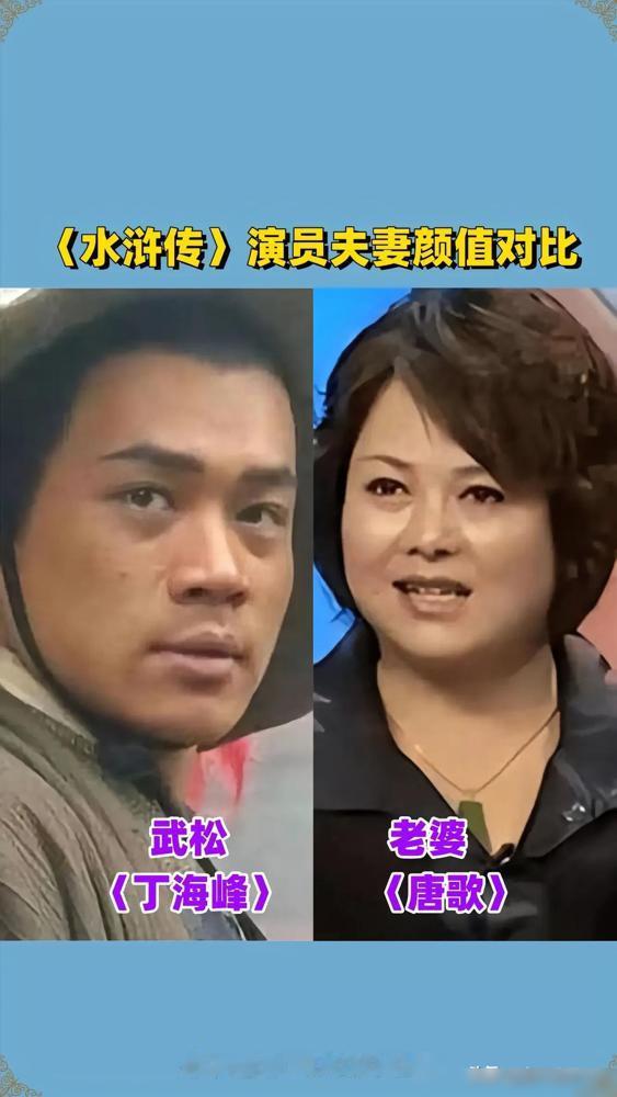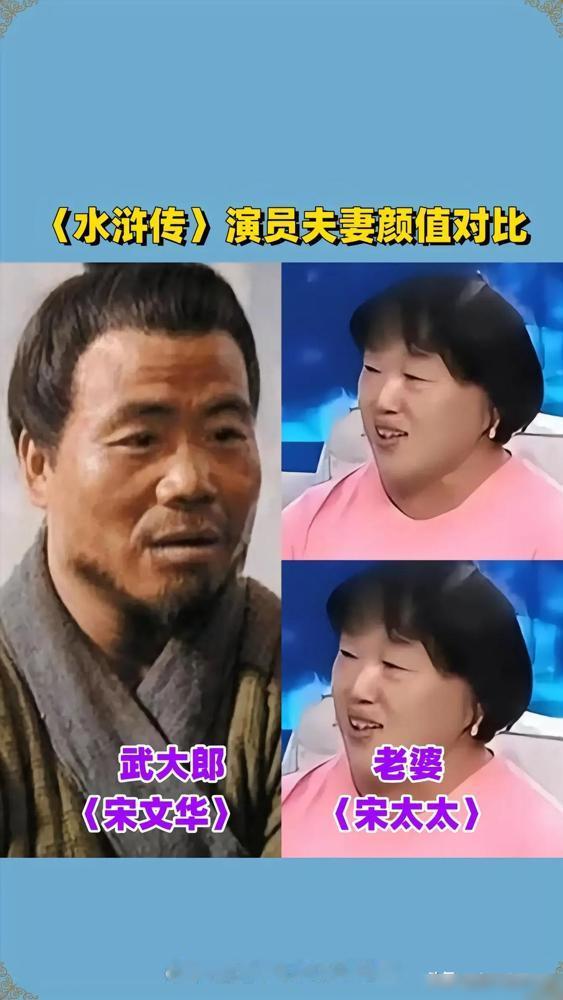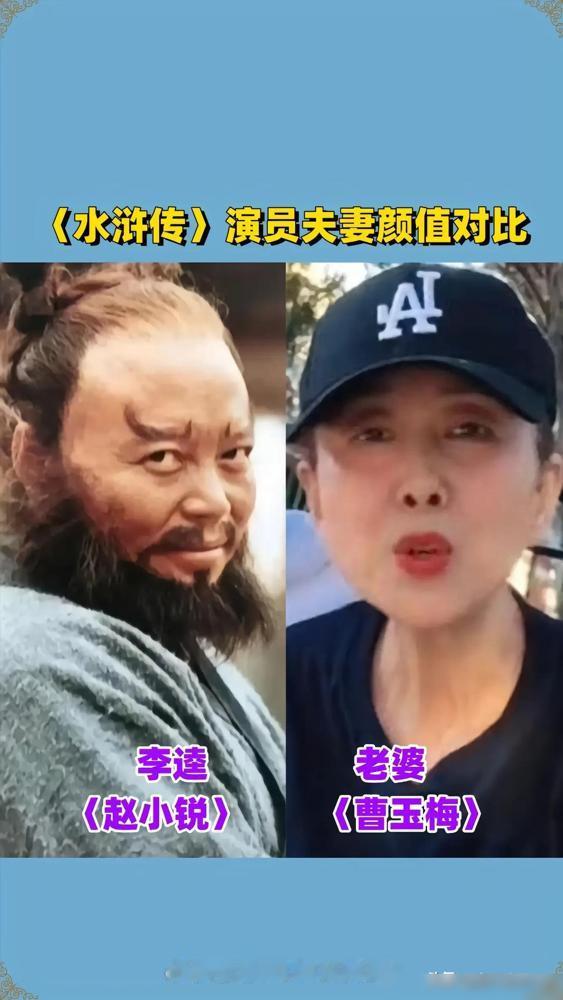 《水浒传》演员夫妻的颜值对比。98版里,母夜叉孙二娘的老公侧颜英俊无比,和五大三粗形象的孙二娘站一起,颜值反差还挺大。 我看到有人把这些演员和他们现实里的伴侣摆到一起比一比,说的都是剧外的故事,场面有点出乎意料。 先说个我觉得最反差的,就是李逵这对。明明角色粗里粗气,结果他和妻子放一起,居然被说成很有夫妻相,感觉就是那种越看越顺眼的搭配。 然后是武松这条,我一开始以为是段子,结果原文就写着他妻子“赛热巴”。虽然真假不好说,但这种强烈想象画面,难怪大家提起来都挺有画面感。 再看武大郎这边。原文说他妻子有旺夫相,可戏里两人完全没过上好日子。我挺在意这个反差,可能就是戏剧效果故意拉开的吧。 还有个细节是潘金莲的老公,说颜值不输陈道明。这个评价听着挺大胆的,但也说明可能在当年属于稳稳的帅哥类型,我觉得观众的记忆点也因此更足。 最戳我的是李琦。他演牛二的时候那股混不吝的劲儿太到位了,结果现实里和化妆师妻子一见钟情,还闪婚,把三个孩子都随母姓。我觉得这事本身就说明他应该很看重伴侣。 说到底,这些组合给我的感觉是,戏里戏外完全是两种魅力。角色再怎么狠,到了生活里还是有人柔软、有人温暖,特别有对比感。 大家可能更愿意看这种反差萌吧,剧外的小故事比剧情还能让人印象深一点。