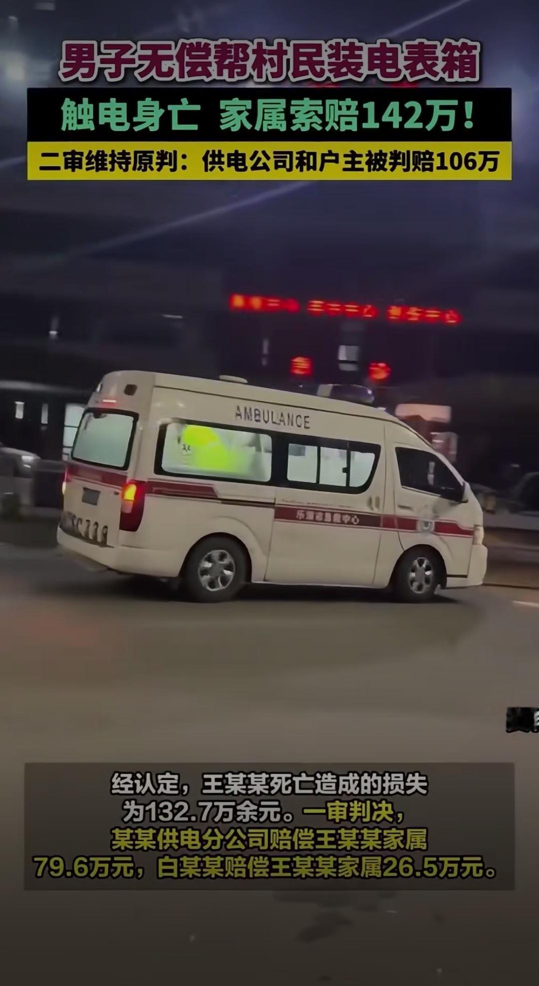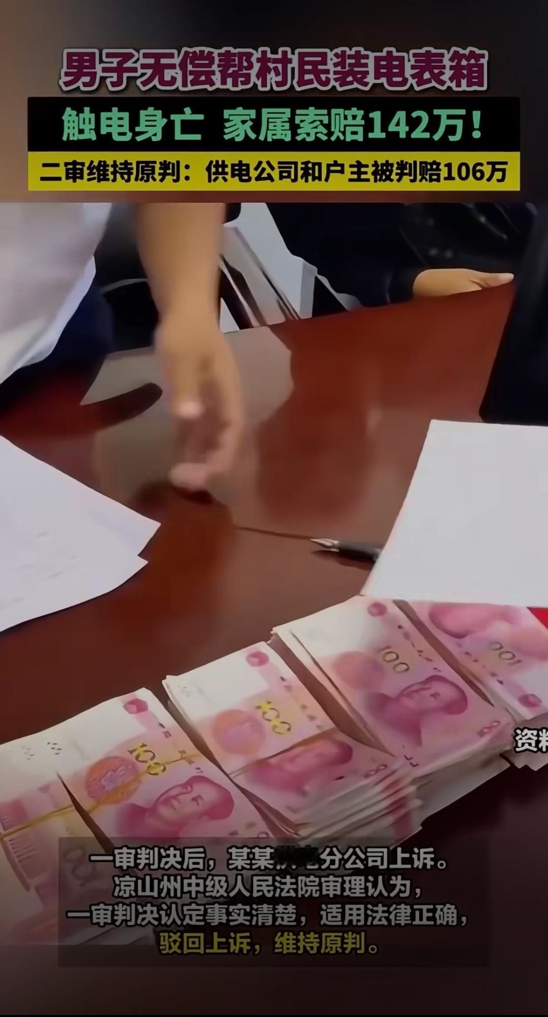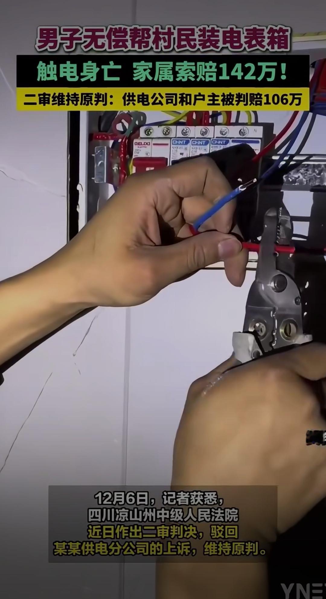 无偿帮装电表箱触电身亡,106万赔偿背后:三层责任失守,善意不该用生命买单!责任失守酿大祸 “乡里乡亲搭把手”本是农村最暖心的互助,可四川凉山的王某某怎么也想不到,一次无偿帮村民装电表箱的善举,竟让自己付出了生命代价。家属索赔142万,二审最终判决供电公司和户主共赔106万,这张判决书的背后,藏着三个扎心的真相,戳痛了无数人。 事件的根源早有伏笔:农网改造时工程队操作失误导致电表箱损坏,户主白某某求助供电公司,对方只给了新表箱,却在明知其不会安装的情况下,甩下“等工程队或自己装”的模糊答复。白某某转头找了王某某无偿帮忙,施工中王某某已明确告知“电表线漏电”,可白某某只是按供电公司指引领取材料,并未制止,最终悲剧发生。 供电公司60%的主责,赔的是“甩锅式服务”。作为电表箱的产权方和维护者,本应主动上门处理安全隐患,却把专业风险转嫁给普通村民,省下一次上门服务,换来一条人命的代价。户主20%的责任,戳穿了“人情大于安全”的误区——明知漏电仍让帮工者继续,免费帮忙从来不是漠视安全的借口。而王某某自担的20%,更是给所有人敲响警钟:善意值得肯定,但面对漏电隐患凭侥幸蛮干,就是给危险留了可乘之机。 网友的评论字字揪心:“好心帮人却丧命,太让人惋惜!”“供电公司的责任根本推不掉,安全能随便甩锅吗?”“以后帮人也得先顾着自己安全啊!” 这起悲剧本可避免:供电公司多一份主动,户主多一份谨慎,王某某多一份警惕,就能守住生命底线。 善意从不是风险的挡箭牌,安全也从来没有“人情例外”。这106万赔偿,是对逝者的告慰,更是对所有责任方的警示。你觉得这份判决合理吗?遇到类似帮工场景,你会怎么保护自己?欢迎在评论区聊聊!