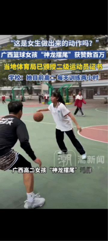 这动作男生看了都得喊绝!广西一位高二女生的“神龙摆尾”篮球绝技炸翻全网,单条视频获赞直奔数百万,网友刷到直呼“打破性别刻板印象”。 女孩没进专业体校,就在普通高中读书,高二学业压力不小,仍每天抽出两小时练球,球鞋磨破三双,手掌起茧是常事,全靠热爱死磕基本功。 当地体育局主动找上门,核实动作难度和训练强度后,正式颁授二级运动员证书,这份认可让网友直呼“实至名归”,不是花架子是真本事。 有人曾留言“女生打篮球能有多厉害?”看完她的训练视频才懂,所谓绝技,不过是把别人追剧、刷手机的时间,全用在了球场反复打磨。 你身边有没有藏着绝技的普通人?这波“神龙摆尾”能不能排进篮球名场面?来评论区聊聊你的看法~
