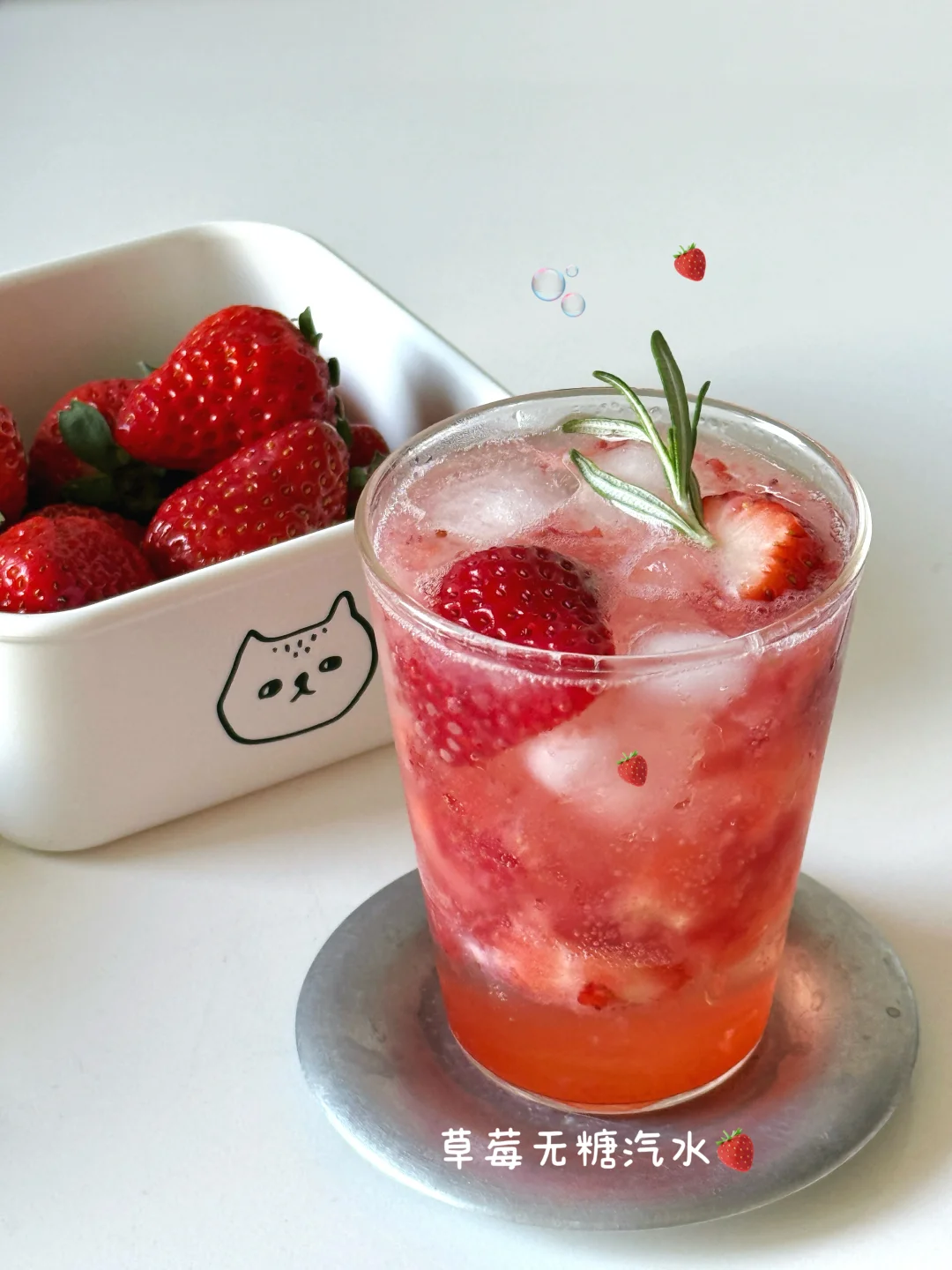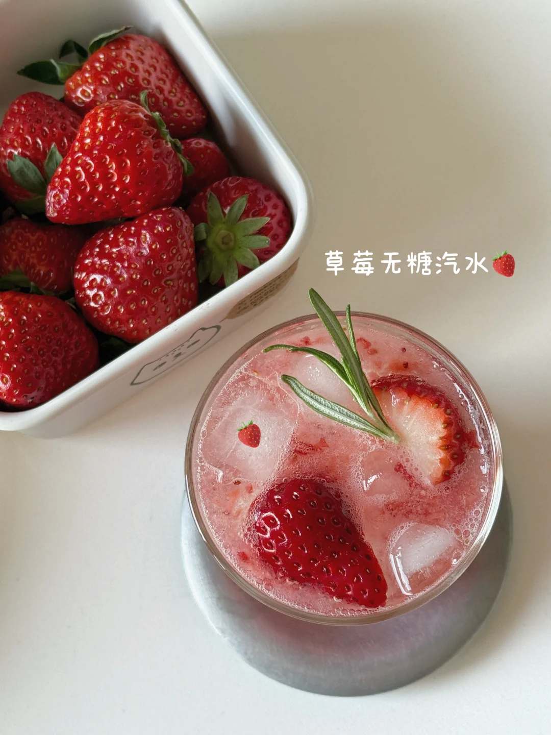 草莓加上无糖汽水,主打一个果香畅爽✌️