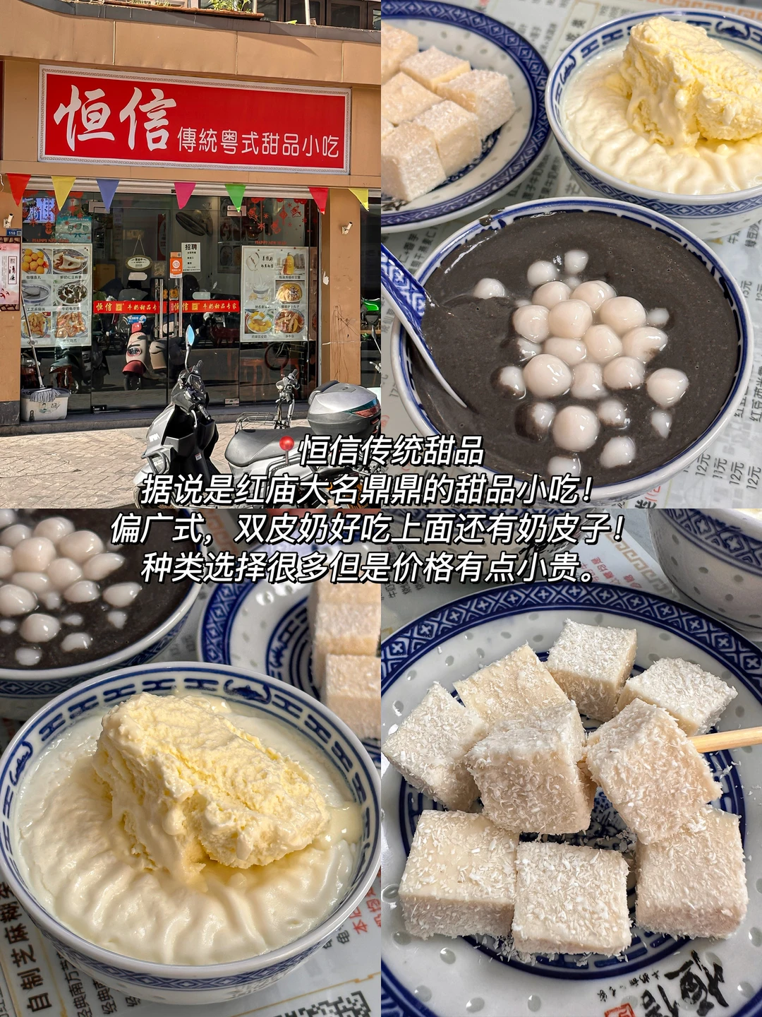 据说是红庙大名鼎鼎的甜品小吃!偏广式,双皮奶好吃上面还有奶皮子!种类选择很多价格有点小贵