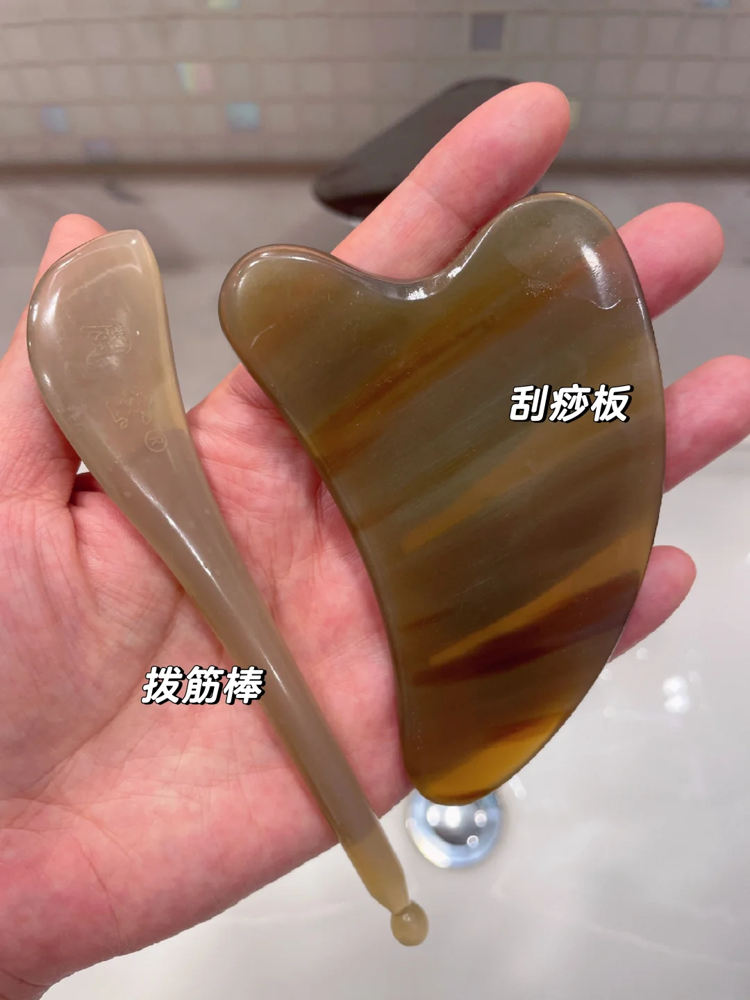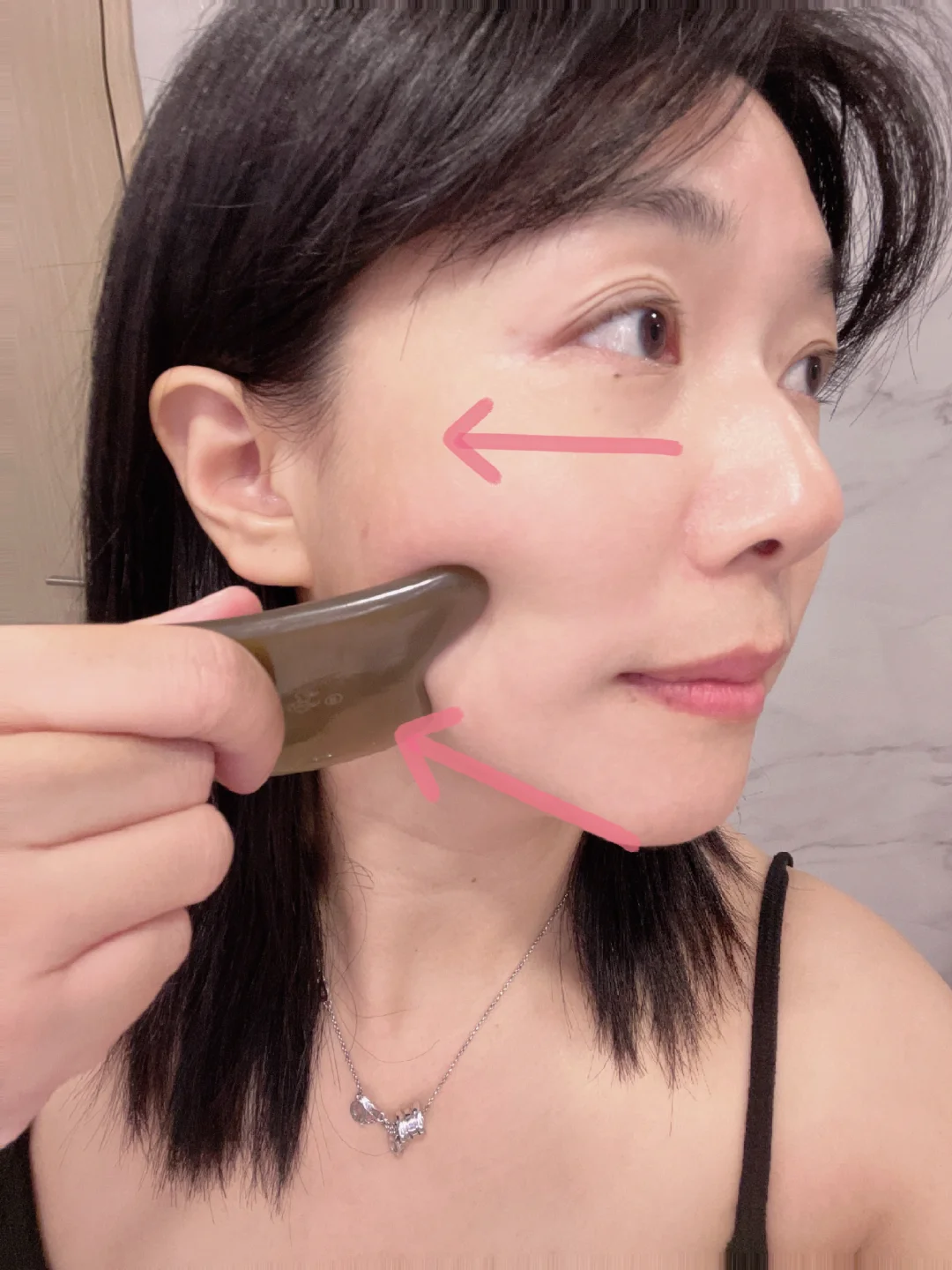 先用拨筋棒开穴,再用刮痧板 从眼头到眼尾,鼻翼到耳朵,下颌线各刮5次