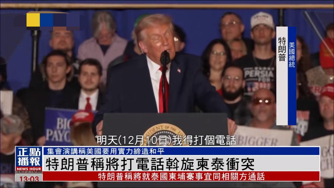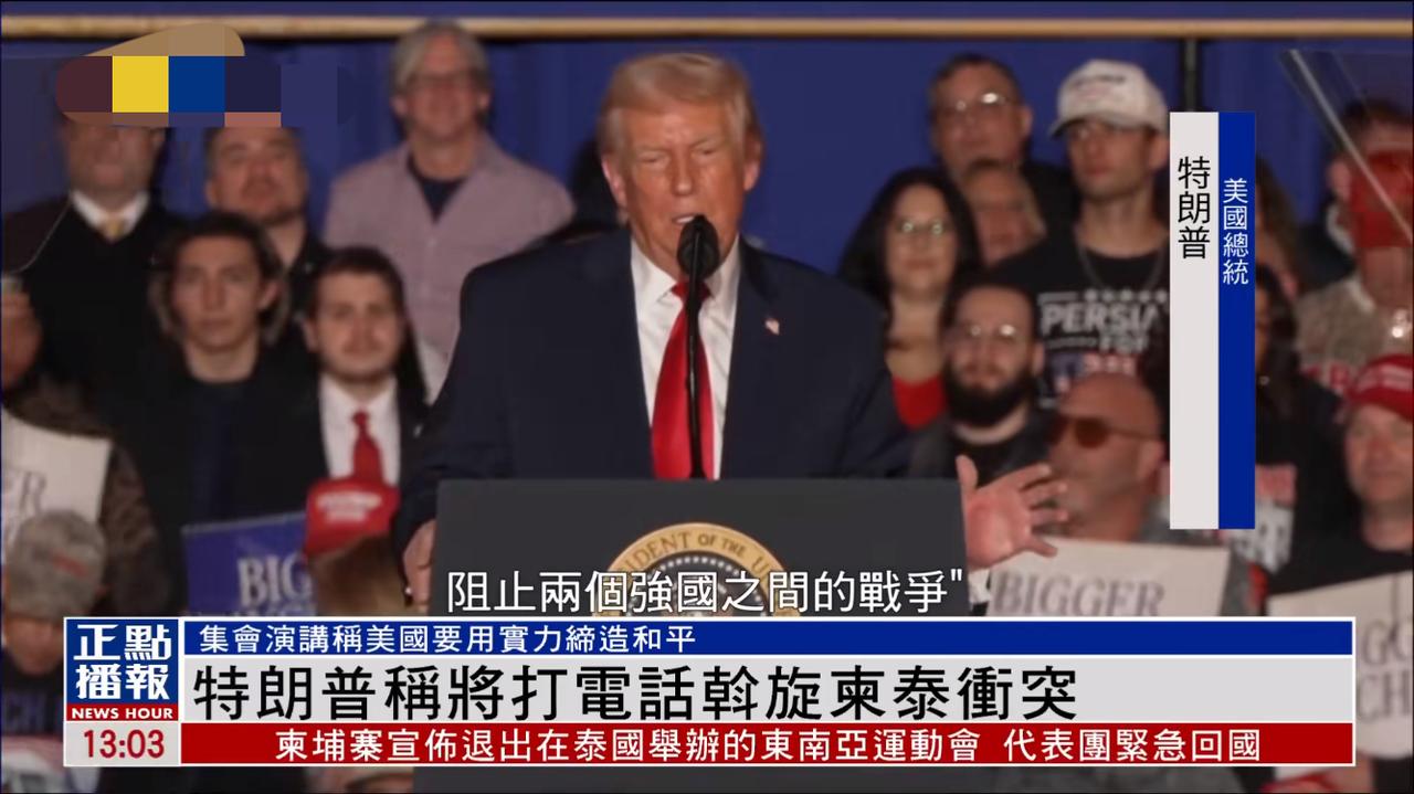 特朗普在美国的集会上说这两个月凯旋了无数场战争与冲突。挽救了无数家庭,儿童,妇女。 不知道天杀的两个强大的国家又打起来了,泰国和柬埔寨。特朗普要给他们打电话,要用实力让他们停下来。这是美国要做的也是他要做的,结束冲突至关重要。 美国要用实力让他们停下来,特朗普敢保证。 川普真是个有心人!