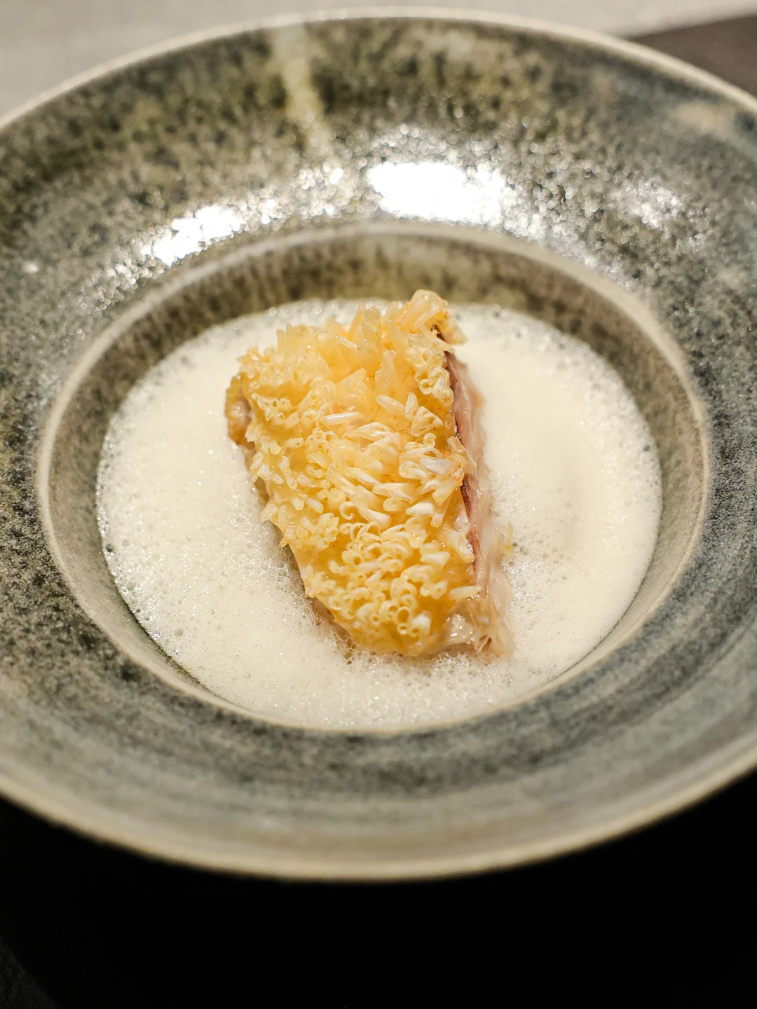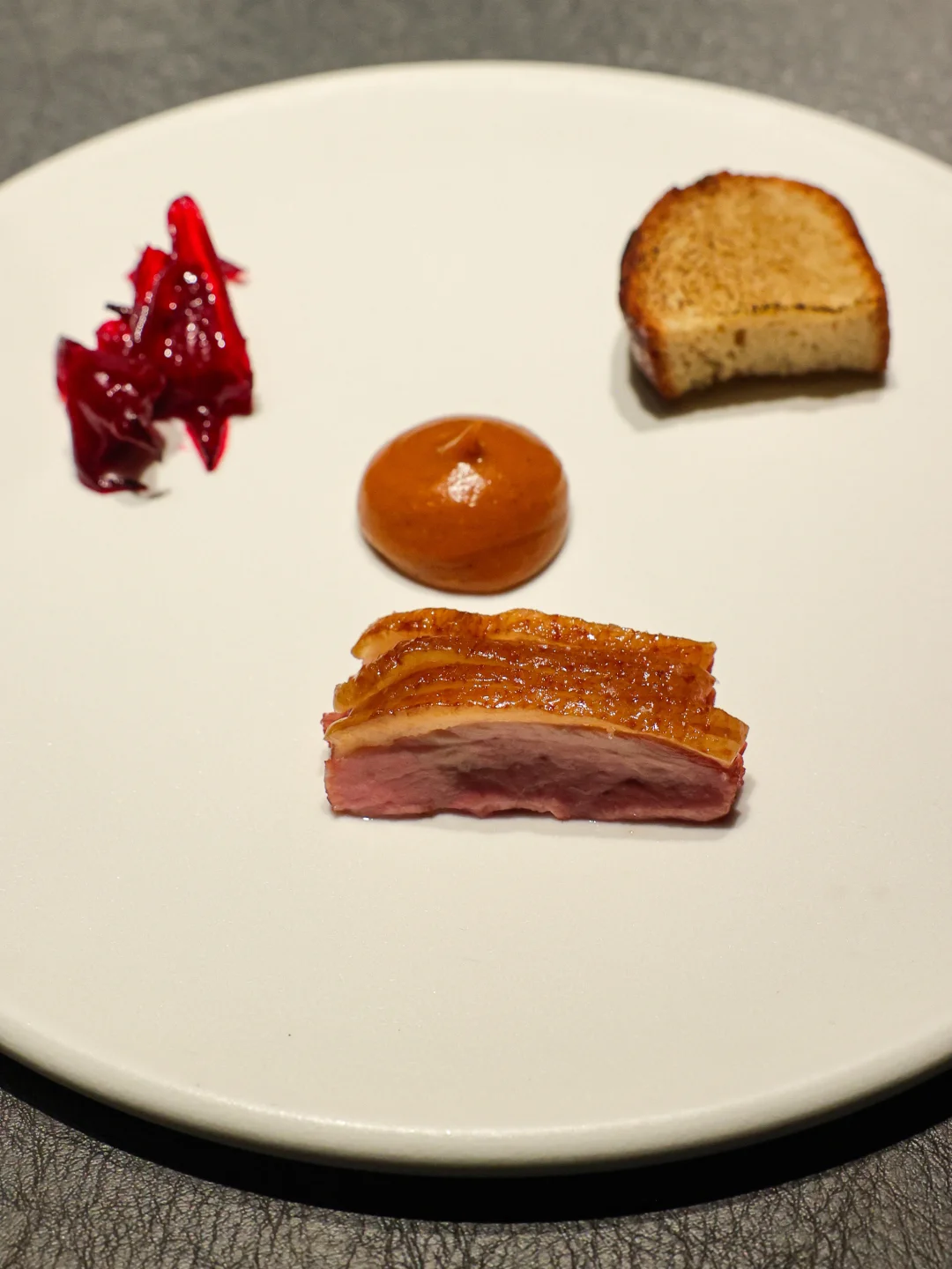 🦆经典鸭肉环节,熟成两周的湖州白羽鸭通过香料额外腌渍过,本身吃起来带有标准的脆皮以及完美的肉香,直接吃鸭肉就让人心满意足。