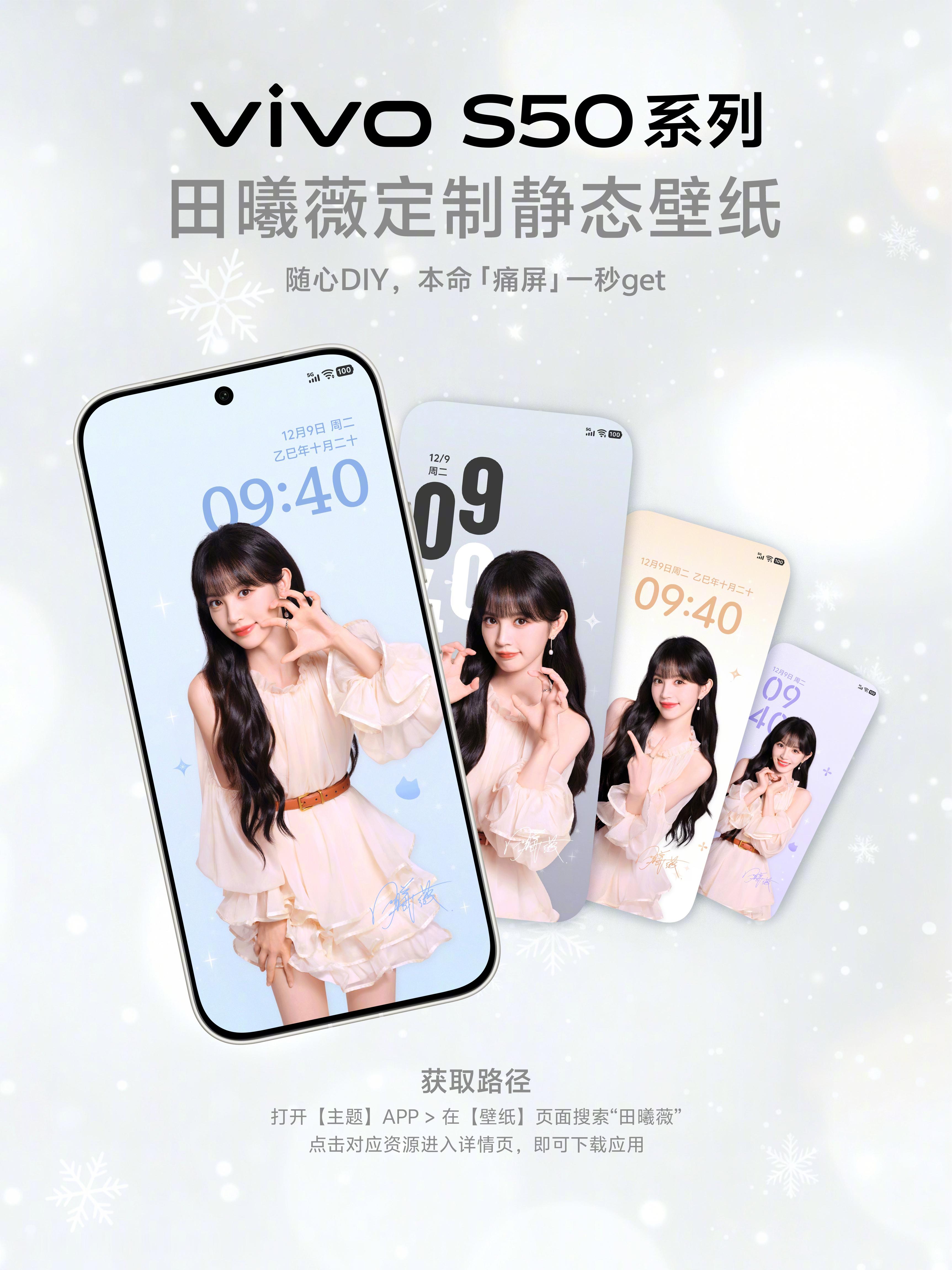 如今的设计师们将壁纸设计得越来越精美,每一张都是视觉盛宴。每次更换壁纸,就像是在欣赏画作一样,更别说是自己的偶像定制了。vivos50vivos50系列美学大使田曦薇