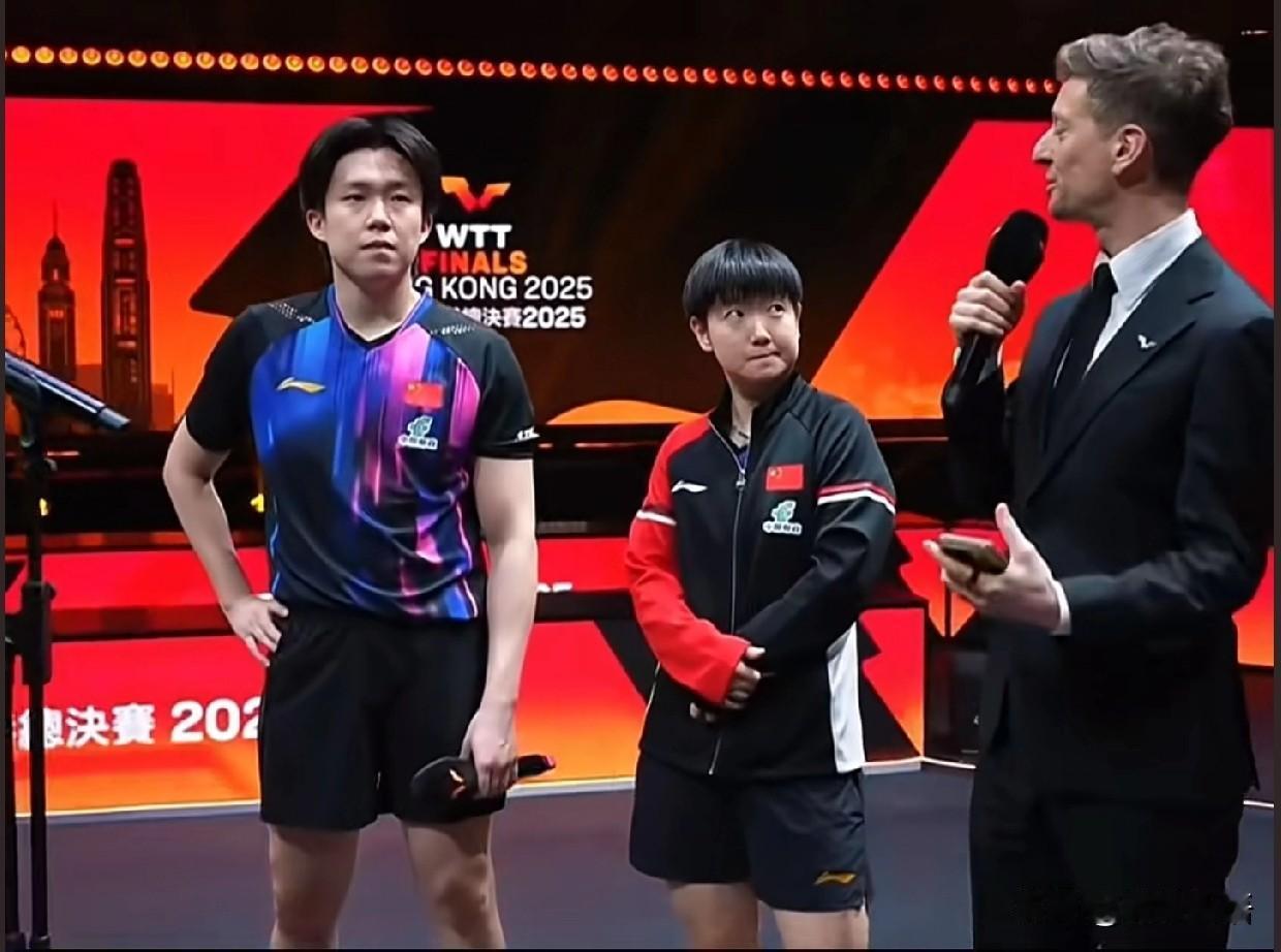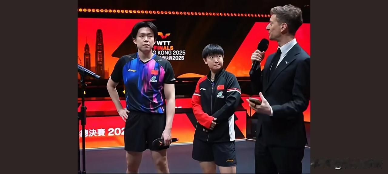 亚当采访莎莎和楚钦是,那宠溺的笑。 亚当穿正装还有点不习惯哟,看惯了花里胡哨的亚当了,之前他采访时穿着花鞋子,估计看到大家网上蛐蛐他了,现在也穿上皮鞋了,记得刚采访那次,王楚钦还夸亚当很帅! 平时亚当都是解说比赛,今天他又来现场采访了,他穿着这一身确实帅气了,亚当用英文提问,然后翻译说:“怎样总结刚才的比赛呢,首先有请莎莎”。看到王楚钦都都抬手准备回答了,又把话筒给了莎莎,莎莎说他们会全力以赴打好接下来的每一场比赛。莎莎回答的时候,亚当在一旁看着莎莎笑。 还以为时间晚了,没有内场的采访了,有网友说:“怎么还要采访呀?王楚钦晚上还有比赛呢,那松岛辉空都吃饱睡醒了,他都休息多久了。”楚钦估计这会儿就都不能吃饭,也就吃点小零食垫一垫,只能在训练馆休息休息,还有两个小时他就又要打男单了,还是七局四胜制的,楚钦加油!
