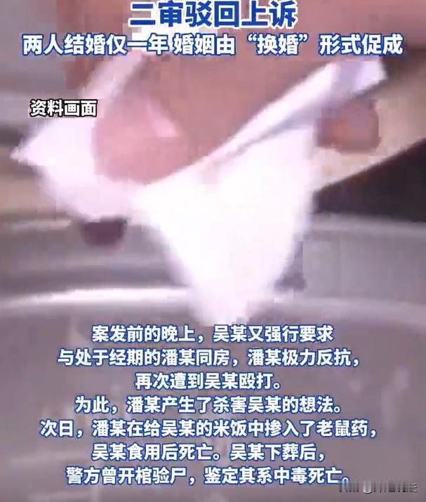 江西,一女子在生理期,被丈夫强行要求夫妻之事。女子拒绝,丈夫就对他展开殴打。女子被打后怀恨在心,第二天往丈夫的米饭中掺入老鼠,丈夫食用之后不幸离世。而下葬之后,男方亲友要求做检测,女子的丈夫又被安排了尸检,查验出属于中毒后离世的。事迹败露之后,女子立刻潜逃到外省,改名换姓还重新嫁人。 潇湘晨报·晨视频12月10日报道了这则新闻,女子潜逃了27年,最后还是落网,因为涉嫌故意伤人罪,被依法判定处以无期徒刑。 在27年前,潘某的时代流行“换门亲”,就是潘某被家人安排嫁给邻村的吴某,吴某的妹妹则被安排嫁给潘某的哥哥。 这样的婚事,也就仅仅持续了一年,就发生了大事。 结婚之后的潘某,生活并不是很如意。因为她发现自己的丈夫吴某,完全就是一个暴怒分子,一言不合就吵架,时常还会对自己拳打脚踢。 最为过分的是,吴某经常在潘某生理期间,强行提出要进行性关系行夫妻之事。每次在自己身体非常难受的情况下,吴某就对自己展开这种“较为变态”的摧残。 又到了某一天,潘某又正处于生理期,她的丈夫又提出了要求,而潘某则表示,“难道不能再等一等吗?” 看到妻子提出了抗拒,吴某又非常生气,立刻对潘某展开殴打。潘某实在是受够了,当时她的内心,就开始盘算出一个想法:她想要脱离这个难以忍受的家! 第二天,潘某就到市集上去,买了老鼠药。在给吴某做好饭菜之后,她把药物悄悄的投入吴某的碗里,而没有察觉的吴某,就这样吃完了饭。 食用之后没多久,吴某就开始产生反应,剧烈的疼痛与挣扎,让吴某躺在地上不断抽搐,没多久就毒发后离世。 离世之后,潘某就开始给吴某办理后事。就在给吴某下葬的当天,丈夫的亲属提出疑议,感觉吴某的死亡比较蹊跷。 当时就让工作人员过来开棺验尸,经过检测之后,确定吴某是属于中毒后离世的。 事迹败露,潘某非常害怕,她连夜就逃离了村子,跑到了外省。 跑到外地之后,潘某就改名换姓,为了能生存下来,她开始打工讨生活。期间也遇到了合适的男子,潘某也跟对方结了婚。 就这样,潘某在外面潜逃了27年,也重新组织了新生活。然而,命运的齿轮流转之后,潘某还是被发现,最后被相关部门给抓捕归案。 根据审理之后认定,潘某犯下了故意杀人罪,被判处了无期徒刑。最终,潘某认罪服刑。 潘某不堪丈夫家暴、不能忍受丈夫强行生理期的要求,这才产生了杀念。潘某将会面临怎样的法律惩罚呢?如果潘某属于“长期受侵害”,是否可以影响量刑? 第一、对于潘某的行为核心定罪为:故意杀人罪。 根据《刑法》第232条规定,采取投毒的方式故意致他人死亡,主观上具备剥夺他人生命的故意,客观上也实施了致人死亡的行为,符合故意杀人罪的范畴。 故意杀人罪的法定刑罚为死刑、无期徒刑、或者十年以上有期徒刑。需要结合案件的法定量刑情节予以判定。 潘某的行为,主观上就存在戕害丈夫的想法,并且也付出实际行动,将丈夫给毒害过世。因此,潘某犯下了故意杀人罪,按照法律规定,将要面对严厉的刑事处罚。 第二、“长期遭受侵害”,将会对量刑有所影响。 根据《刑法》规定,长期遭受侵害是酌定从轻情节,可以为行为人争取轻量刑罚空间,但是需要满足“侵害事实合法、因果关系合理、认罪悔罪”等前替。 本案可以酌情量刑的情节在于,潘某长期遭受家暴、生理期也被丈夫强行要求行夫妻之事,属于长期受侵害的特殊背景,这一点可以酌定从轻情节。 从本案可知,潘某被家人安排“换亲”,结婚之后一年内,一直遭受丈夫的家暴摧残,甚至生理期也被强行要求行夫妻之事,潘某长期遭受着丈夫的侵害。 如果潘某在归案之后,可以如实供述罪行、认罪悔罪,则可能可以进一步争取从宽处理。 在当时那个时代,潘某如果遭受丈夫的家庭暴力,当时她是否可以依法替自己维护权益呢?当时她并没有去尝试,最后才滋生这样的悲剧。 对此,大家都作何看法呢?