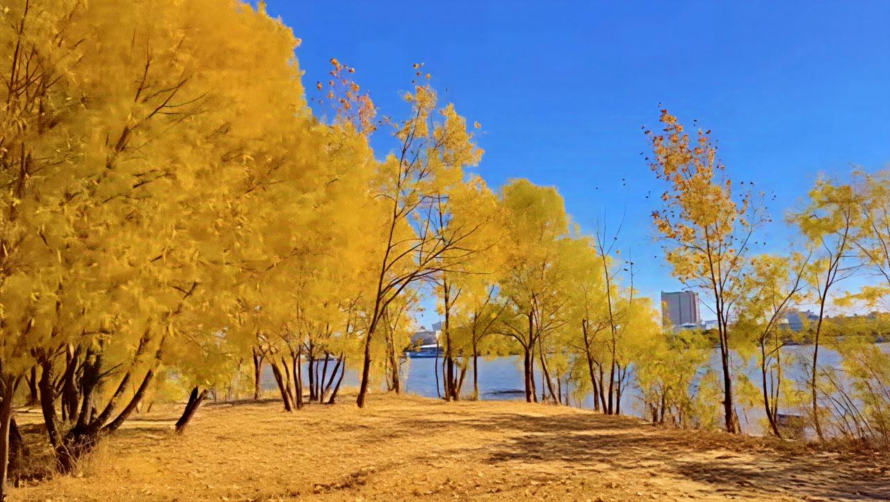 风掠过枝头时,秋便悄悄铺展了画卷。澄澈的天褪去暑气,蓝得透亮,偶有几缕云絮轻飘,像被揉碎的棉白,慢悠悠漫过天际。 路边的树早换了新装,枫叶燃着热烈的红,银杏缀满耀眼的金,叶片在风里轻轻晃,风过处,细碎的光影在地面流转,偶尔落下几片,铺成薄薄一层软毯,踩上去沙沙作响,是秋的私语。 河畔的水也静了,清冽的波映着两岸斑斓,偶有归鸟掠过水面,漾开一圈圈涟漪,搅碎了树影与天光,又慢慢归于平缓。远处的田垄裹着丰收的色,稻穗低垂,泛着温润的黄,风拂过,稻浪翻滚,裹着淡淡的谷香漫过来。 秋阳不烈,温柔地洒在肩头,落在屋檐上,落在墙角悄悄绽放的菊上,淡紫、浅黄的花瓣裹着暖意,添了几分静谧。抬头时,光影错落,低头间,草木含情,这秋光里的每一处,都藏着温柔的诗意。