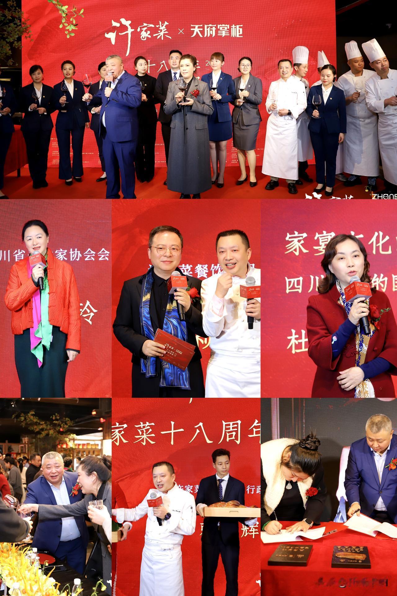 传承与创新并进 许家菜十八周年庆典家宴圆满举行 12月10日,许家菜・天府掌柜迎来品牌创立十八周年庆典。 活动以“家宴”为主题,汇聚行业嘉宾、文化学者与品牌挚友,围绕四川小吃的传承、创新与国际化发展展开深度对话,并举行非遗合作签约授牌仪式,共同见证许家菜从“家的味道”走向“世界的盛宴”。庆典活动于天府掌柜门店举办,现场以品鉴宴形式精心布置,营造出温馨雅致的家宴氛围。