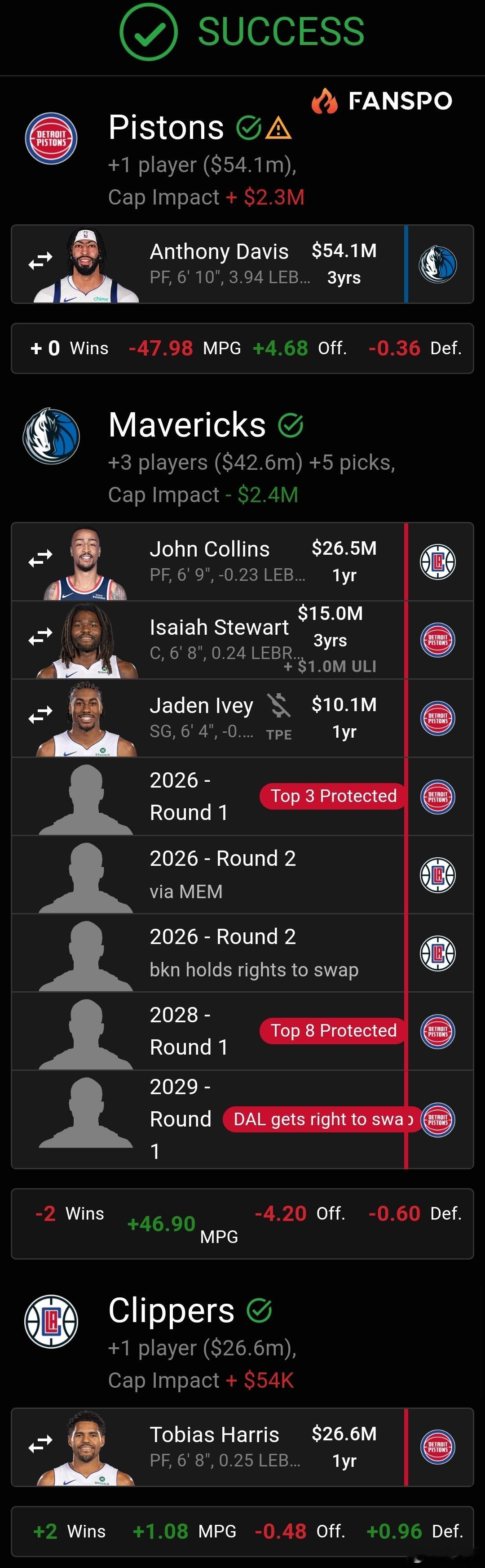 大交易咱玩不起也没筹码,蹭蹭人家热度搭个三方还有点可能性,接旧将拖把大哥回快船队,上限确实不高但好用的。