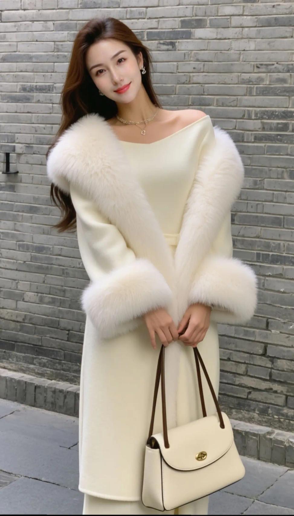 女生怎么穿搭会看上去很优雅个人觉得一身白色的针织长裙,搭配一件同色系质感十足的大