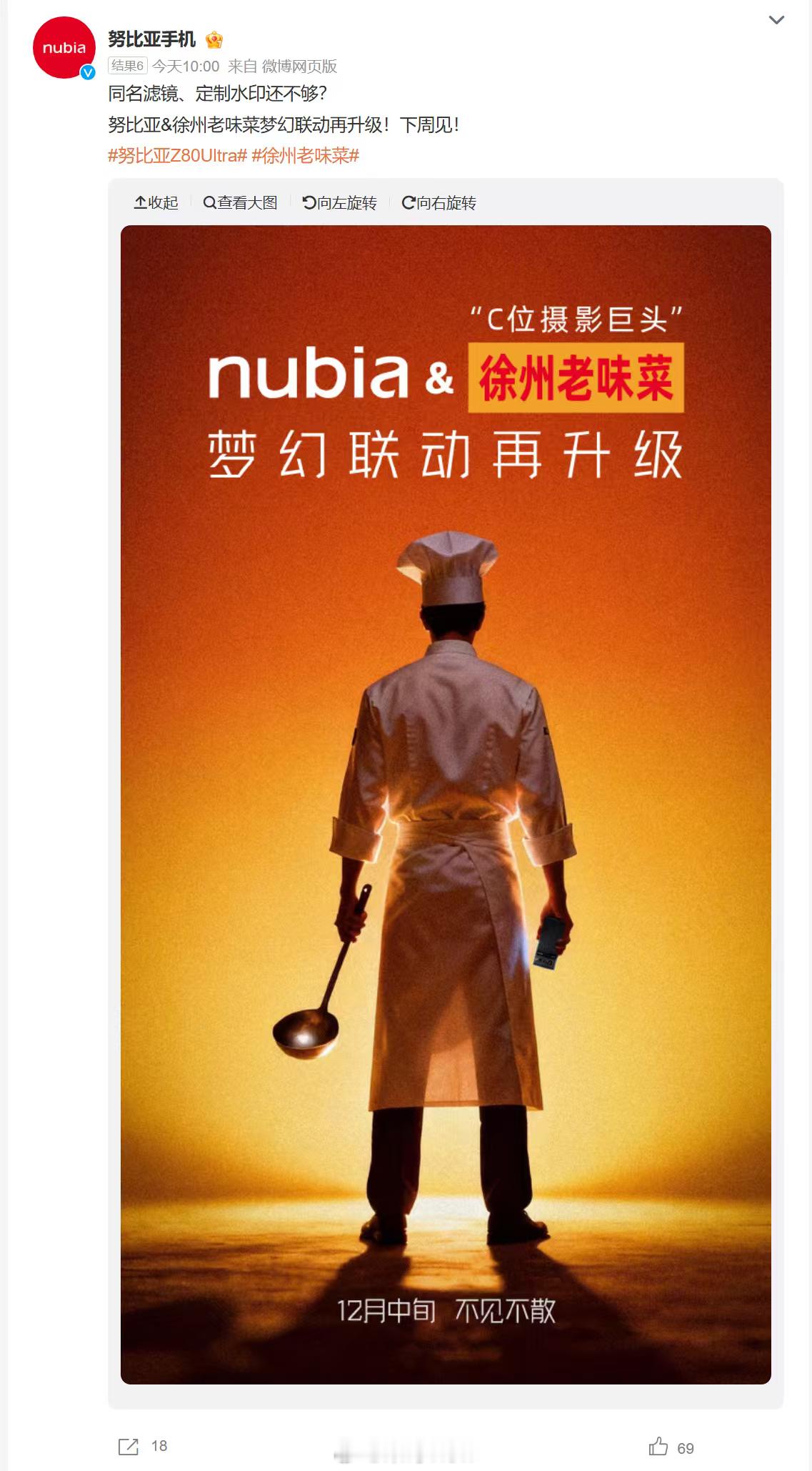 日常拍美食分享时候,总跟觉少了烟火气,努比亚这次和“徐州老菜馆”联动,有专属的滤镜和定制水印,强化了锅气、突出酱汁光泽,暗部细节拉满,拍出刚出锅的新鲜感。开始还是以为那个串子玩徐州老味菜的梗,抬头一看居然是官号