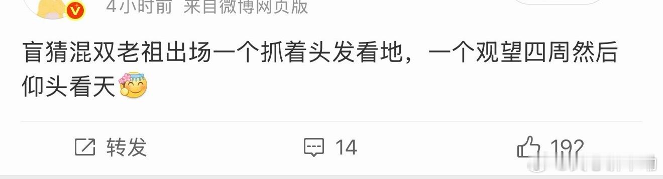 盲猜混双老祖出场一个抓着头发看地,一个观望四周然后仰头看天