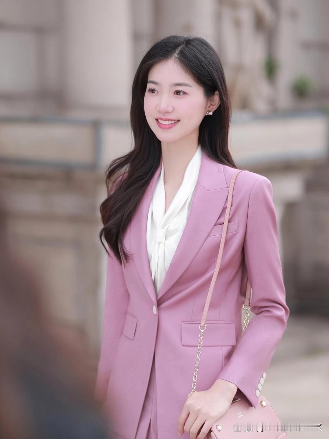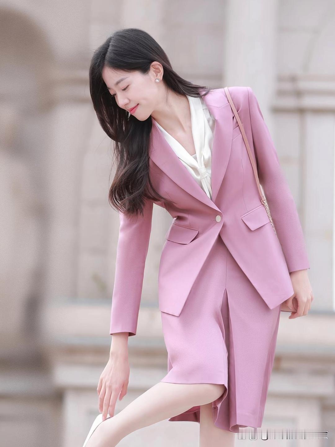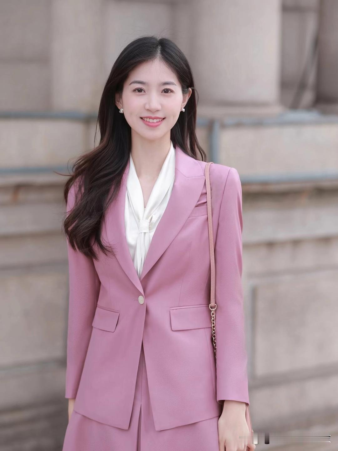 粉色西装搭配白衬衫,简直是都市女性优雅职场风的标配! 选粉色可有讲究,别选糖果粉,容易显廉价。皮肤偏黄就选藕粉、豆沙粉,显白一绝;皮肤白可试试淡樱花粉,但别大面积穿;肤色暗就挑玫瑰棕粉。面料选羊毛呢、真丝这些哑光有质感的,别选亮闪闪的。 版型也要利落,廓形西装配直筒裤或者 A 字裙,干净又大气。搭配上粉加白清爽干净,还能在胸针等小细节处点缀,气质直接拉满。这样穿,温柔里带着锋芒,职场魅力这不就来了!