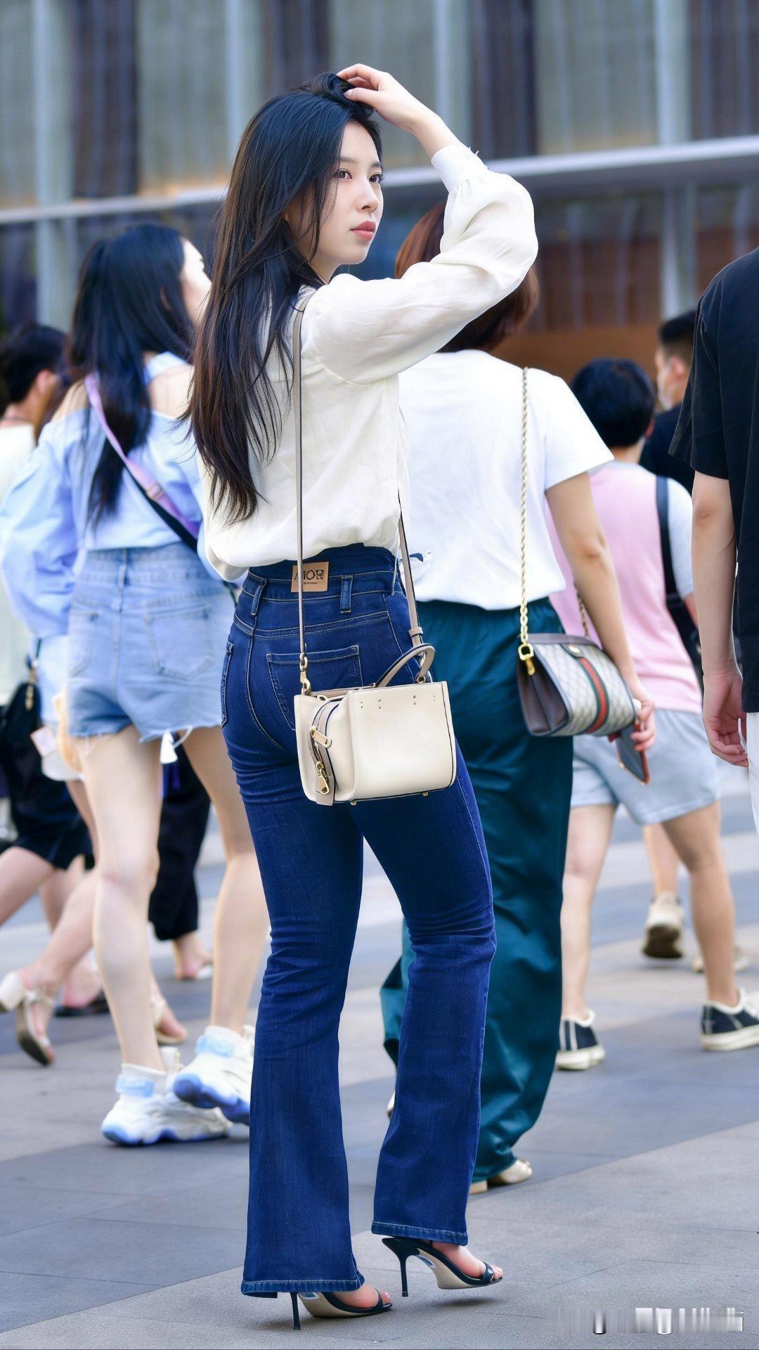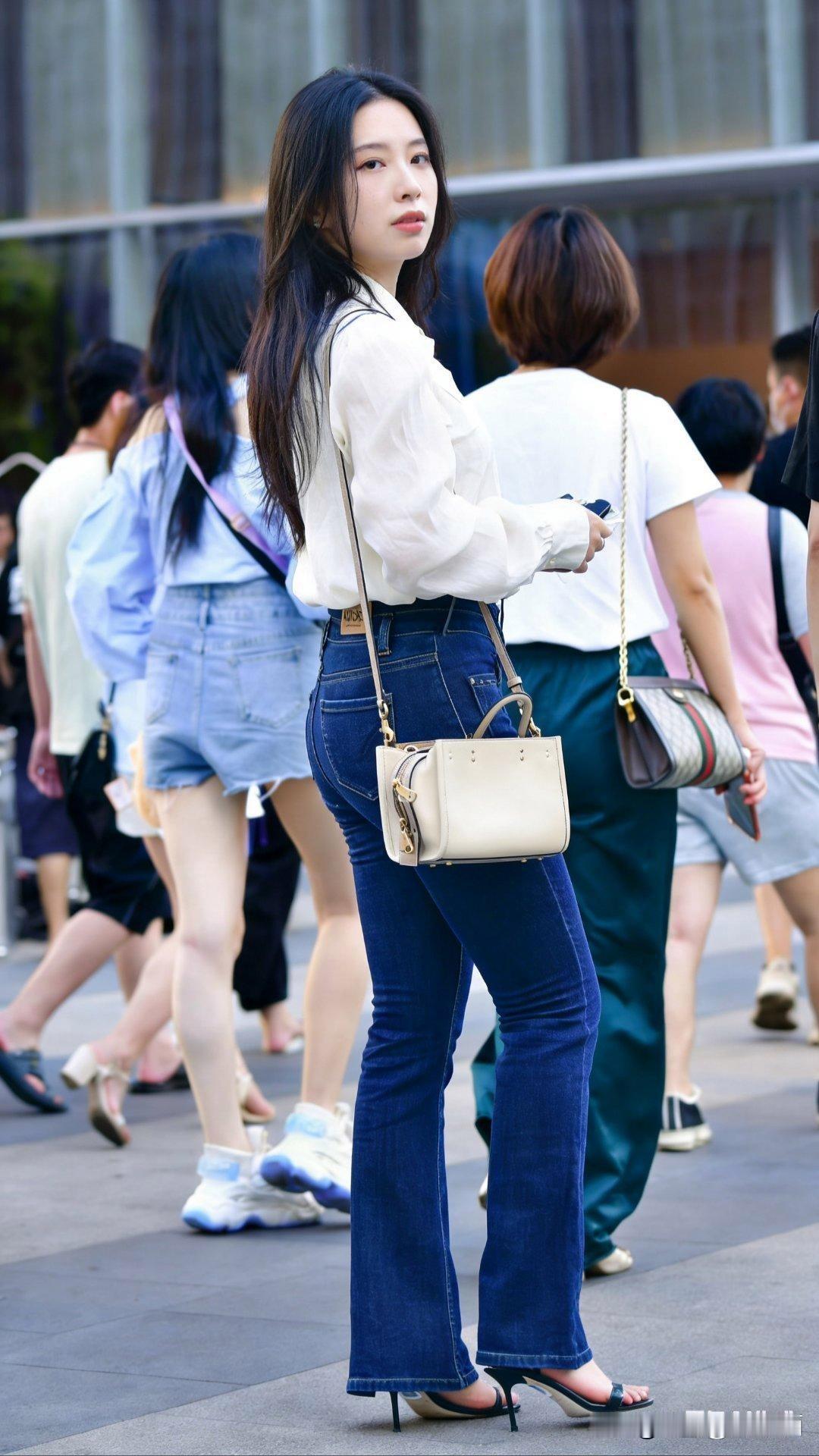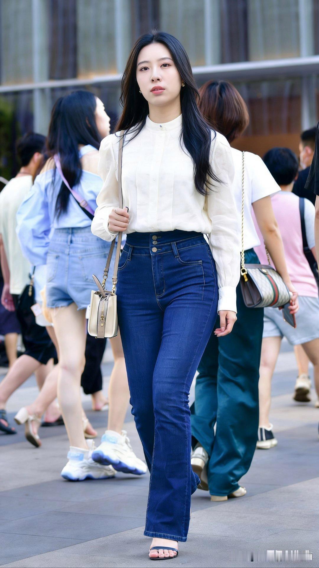 白色衬衫+牛仔裤,这经典搭配真是都市女性衣橱必备!就像那件V领系带、袖口带荷叶边的白色衬衫,轻薄透气还有透视感,V领拉长颈部线条,系带可甜可随性,搭配经典深蓝色紧身牛仔裤,包裹腿部线条,高腰设计优化身材比例。 再配上小方包就更妙了,精致小巧能装东西,还能提升整体时尚感。春天里,小个子女生也能把白衬衫穿得鲜活大方,挽起头发、卷起衣袖,配阔腿牛仔裤,清新又有生命力。这简约搭配,轻松展现都市女性魅力!