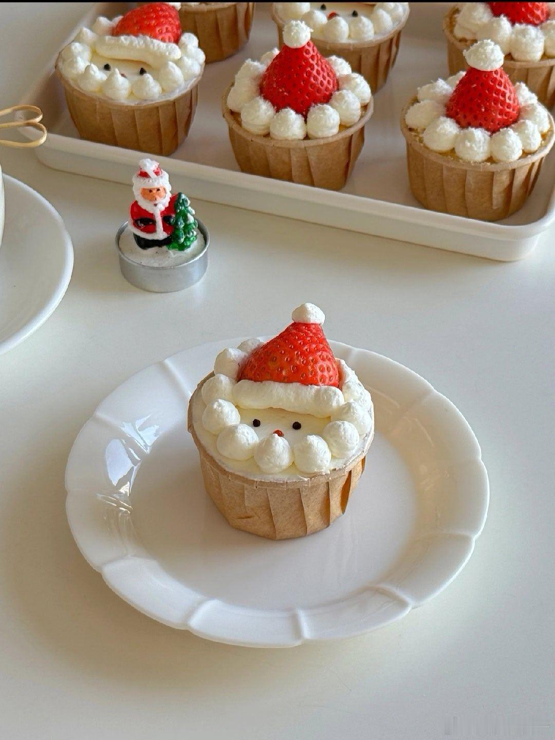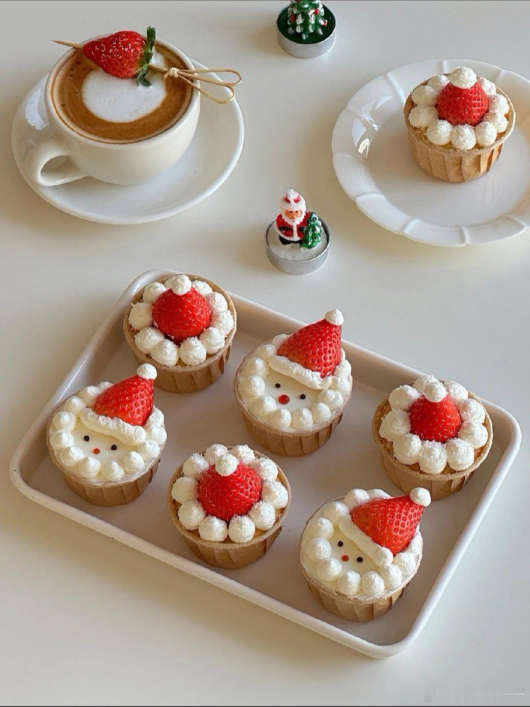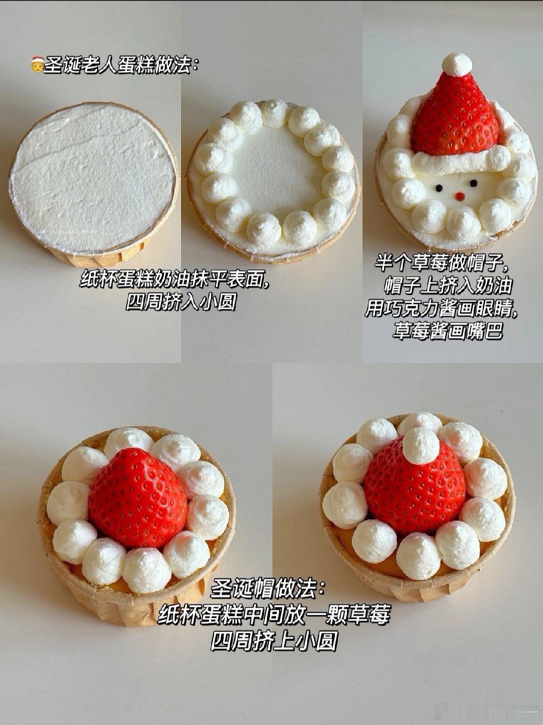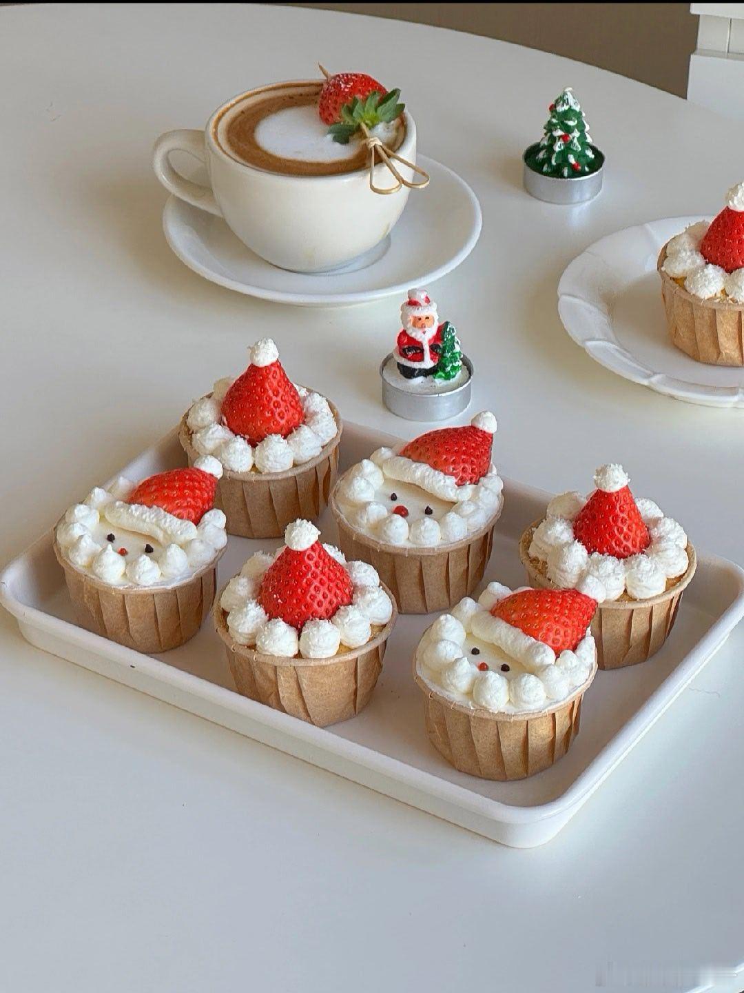 零难度!! 圣诞老人🎄纸杯蛋糕可爱又好吃 又到一年圣诞,来一款简单又好吃的圣诞纸 杯蛋糕吧,烤个纸杯蛋糕,用草莓,奶油就可以拥有圣诞老人,圣诞帽纸杯蛋糕啦,圣诞氛围感拉满,快一起安排起来吧↓🥗食材:纸杯蛋糕:鸡蛋5个,玉米油40克,牛奶80克,低筋面粉85克,白砂糖60克装饰:淡奶油100克,白砂糖6克,草莓💡做法:1️⃣牛奶十玉米油搅拌至乳化状态,筛入低筋面粉,Z字拌匀,加入蛋黄拌匀2️⃣蛋白分次加入白砂糖打发至提起小尖勾 取三分一蛋白加入蛋黄糊中翻拌均匀再倒回蛋白糊中拌匀 面糊倒入纸杯中八分满3️⃣烤箱130度25分钟后转150度20分钟后取出晾凉 4️⃣淡奶油加糖打发装入裱花袋,开始用奶油,草莓做圣诞老人,圣诞帽好期待圣诞节呀,你们是不是也一样呀组个冬日养生局温暖的食光我的美食日记兴趣稀引力计划