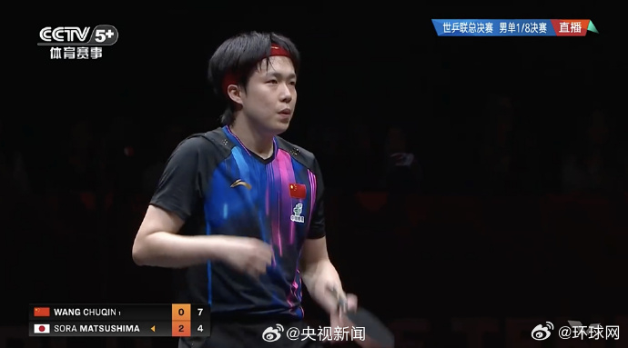 #王楚钦4比3胜松岛辉空##王楚钦连扳3局晋级#【#王楚钦男单8强#】WTT香港总决赛男单1/8决赛,4-3(6-11,9-11,11-4,12-14,12-10,11-4,11-9)战胜日本选手松岛辉空,顺利晋级8强。继续加油! (央视)